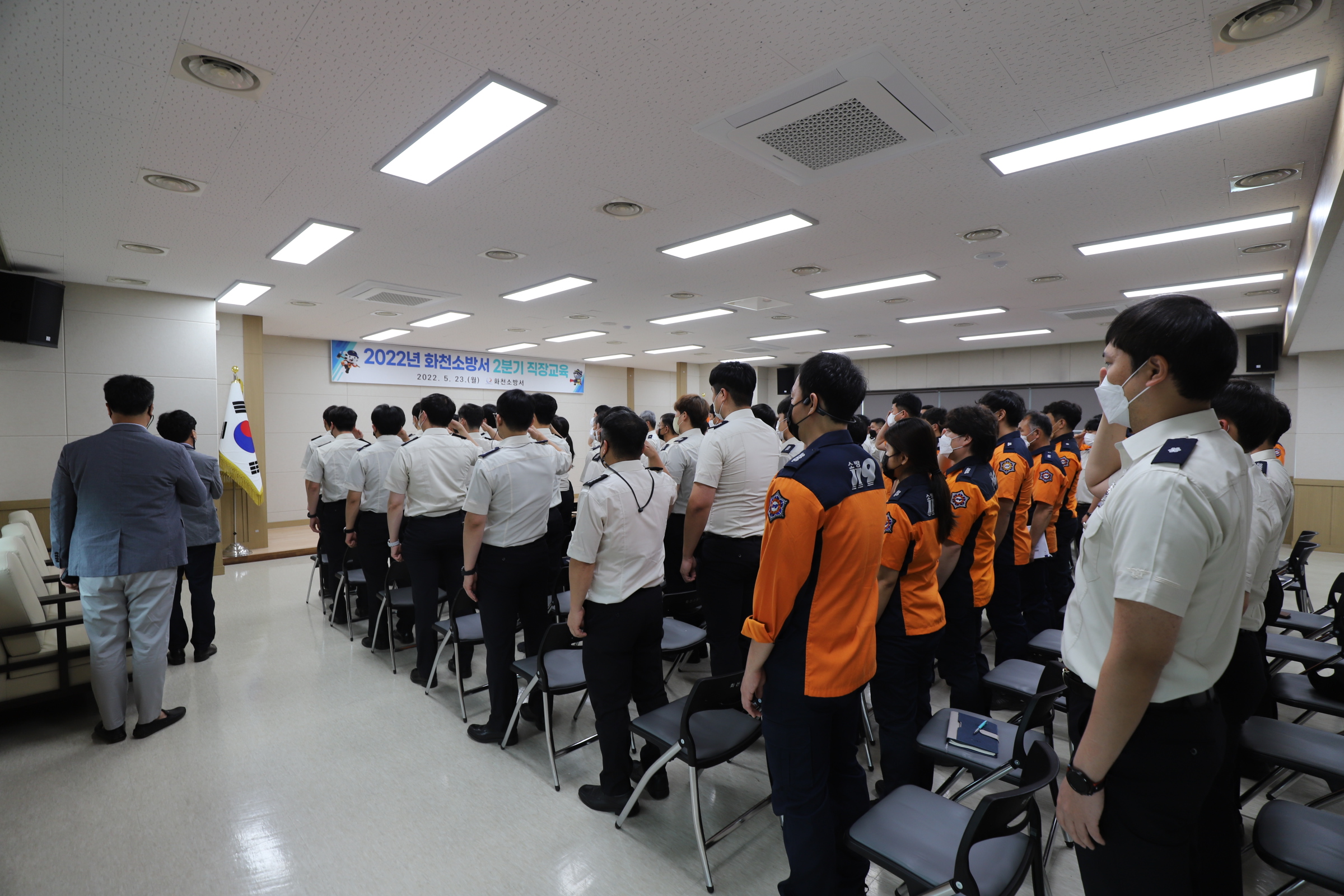 □ 화천소방서(서장 허강영)는 5월 23일 오전 9시 본서 대회의실에서 사회적 거리두기 해제에 따라 상반기 직장교육훈련을 실시했다고 밝혔다.