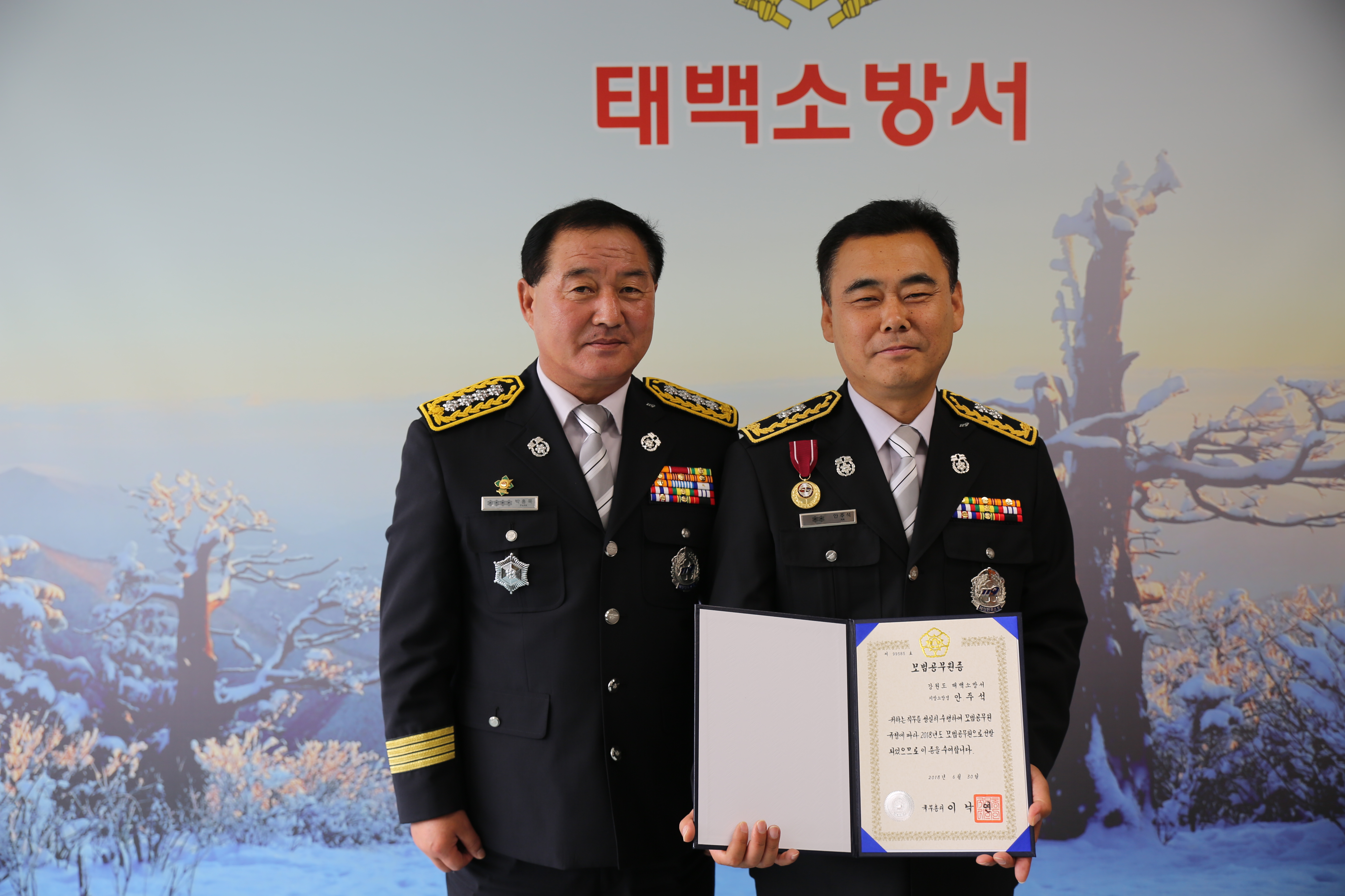 | 22964 | (태백)소방경 안주석 모범공무원 선정 국무총리 표창 수여 | 태백홍보 | 2018-06-30 | 307 | |