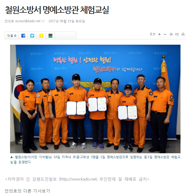 | 21661 | (철원) 명예소방관 체험교실 | 철원홍보 | 2017-08-21 | 178 | |