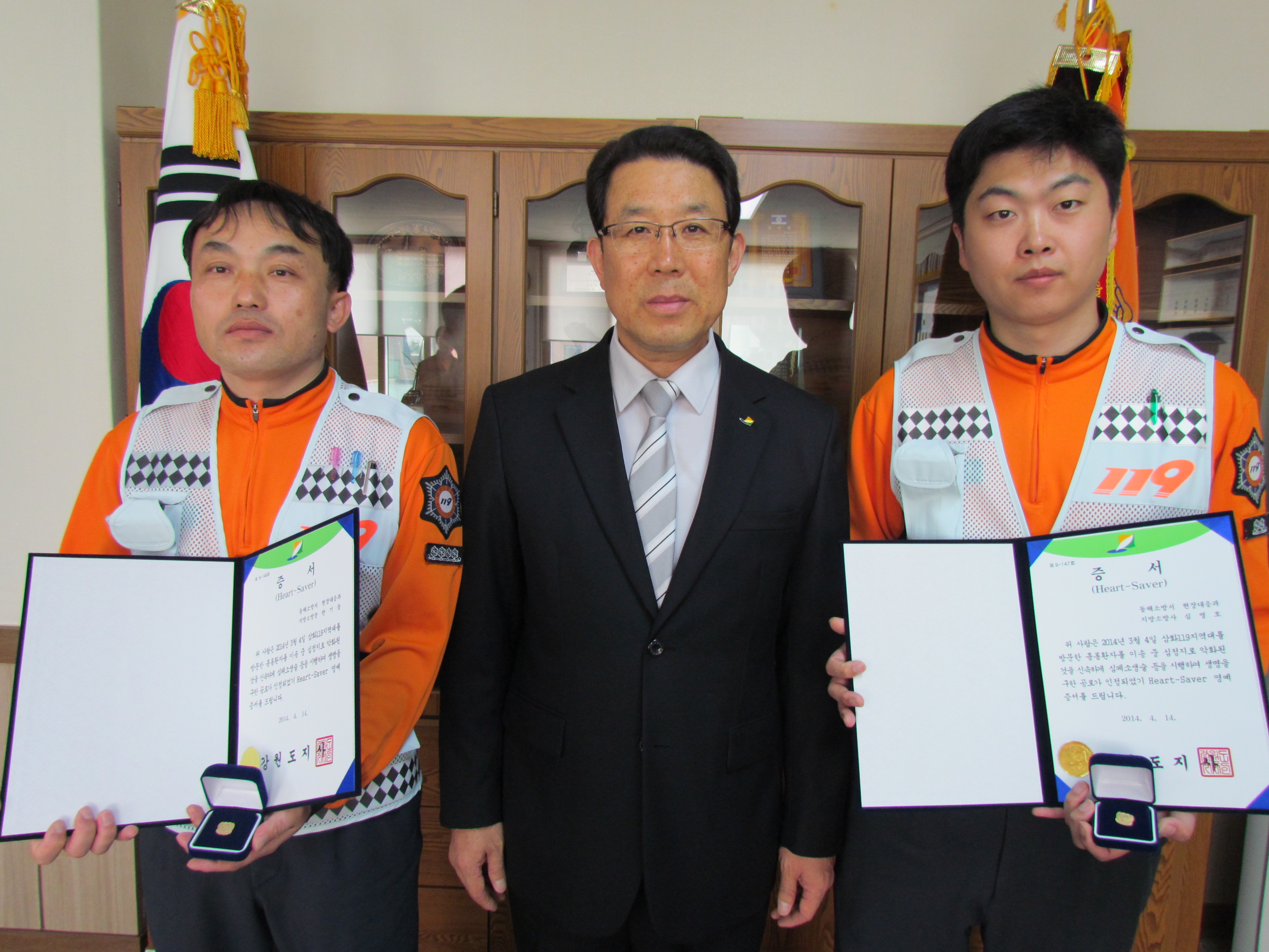 | 19225 | [동해] ‘하트세이버’ 인증서 수여식 개최 | 동해소방서 | 2014-04-17 | 183 | |