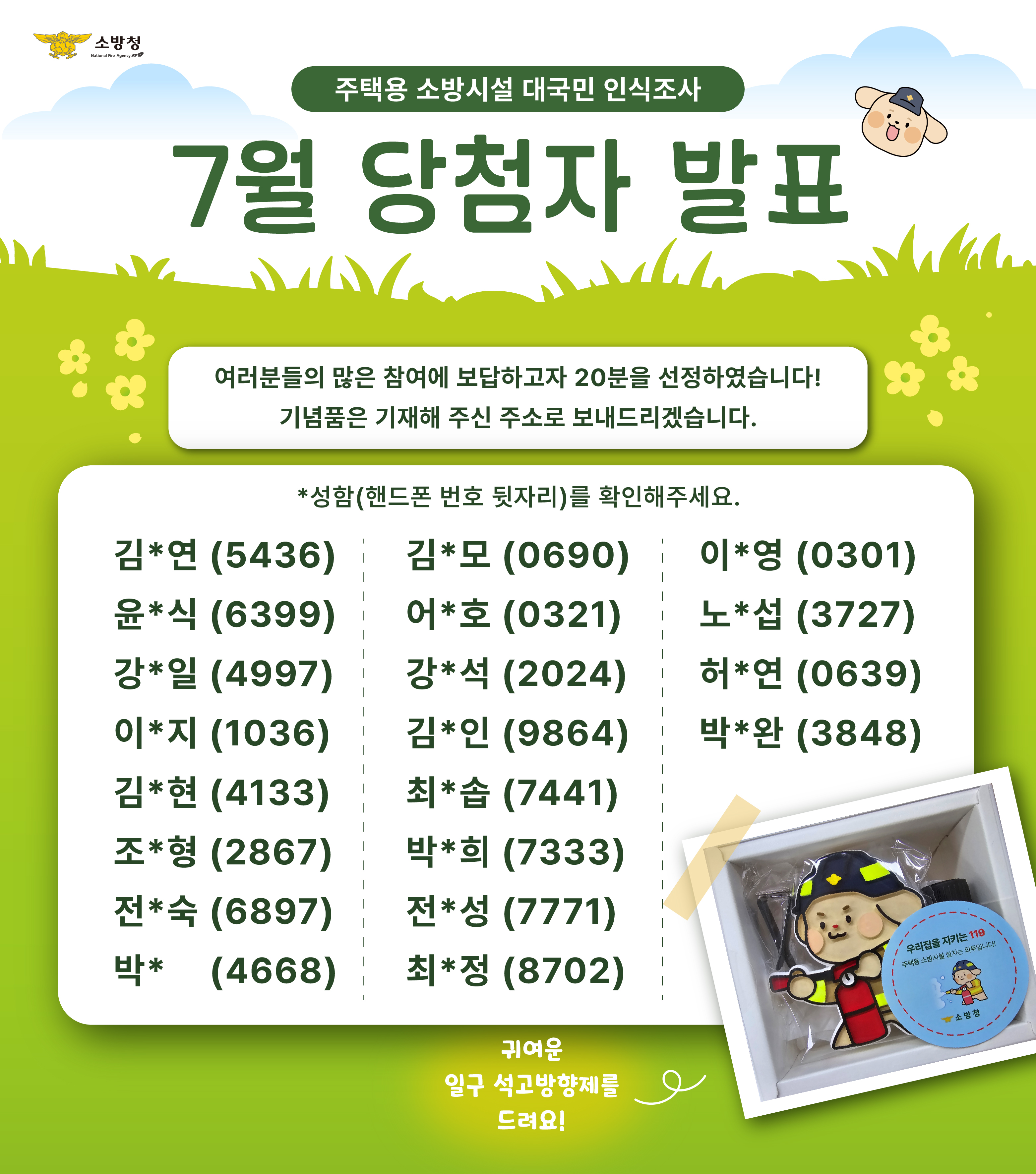 | 26785 | 삼척소방서, 7월 대국민 인식조사 당첨자 발표 | 삼척홍보 | 2024-08-14 | 801 | |