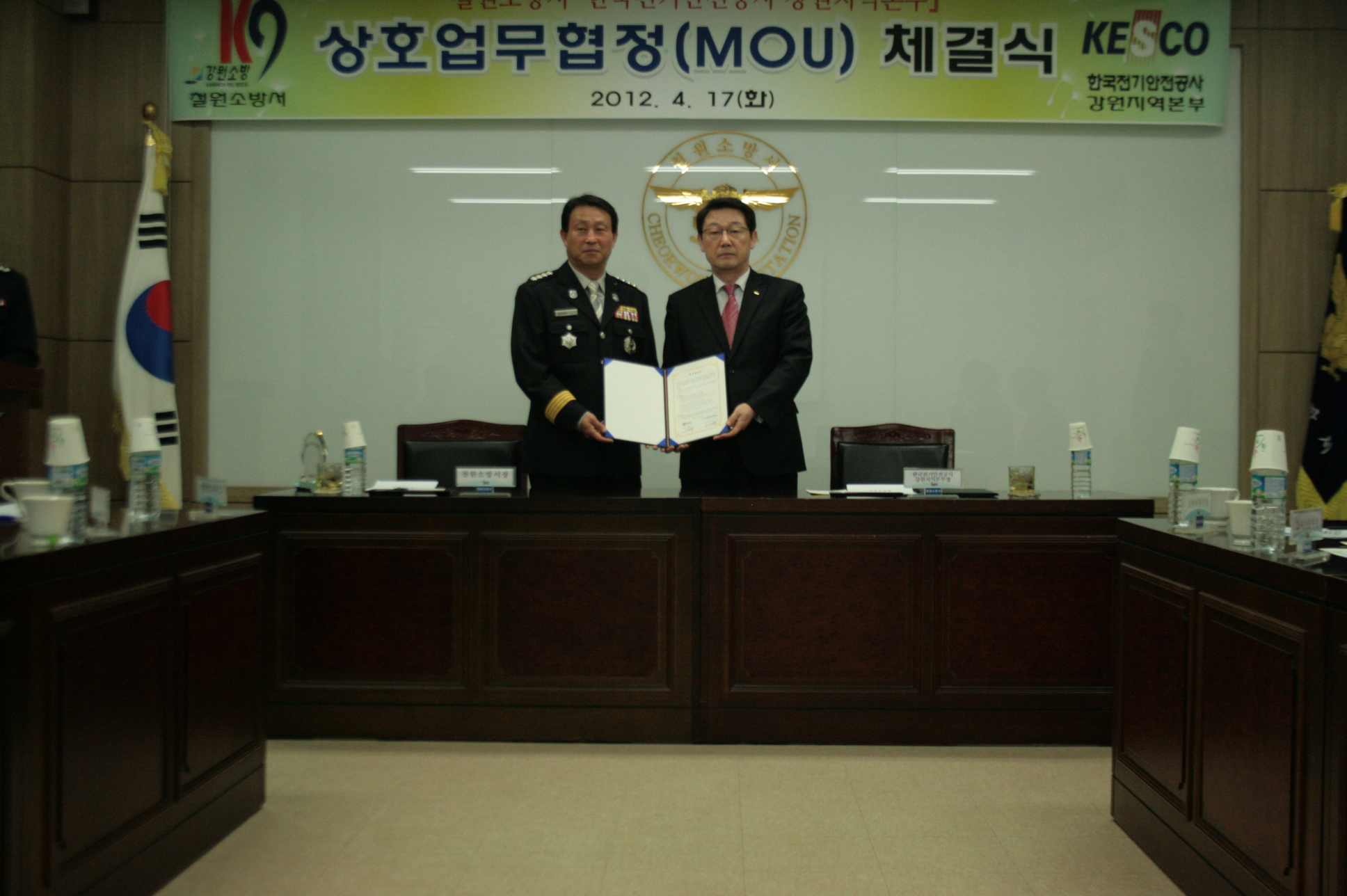 | 16331 | 철원소방서-한국전기안전공사 상호업무협정(MOU) 체결 | 철원소방서 | 2012-04-18 | 139 | |