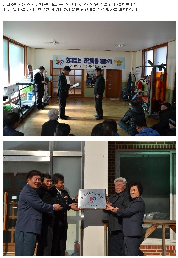 | 15524 | 화재없는 안전마을 지정 | 영월소방서 | 2012-02-16 | 98 | |