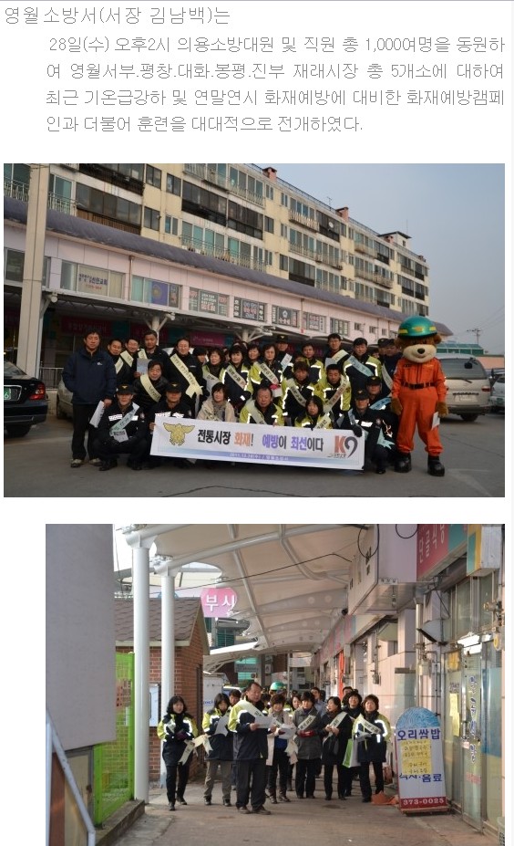 | 14764 | 시장에 화재가 나면? 안돼요~~!! | 영월소방서 | 2011-12-28 | 77 | |