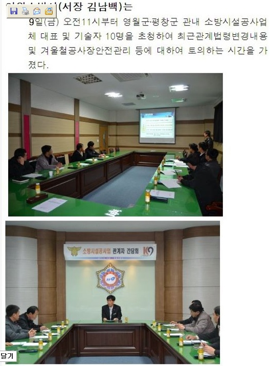 | 14453 | 소방시설업 간담회 개최 | 영월소방서 | 2011-12-09 | 95 | |