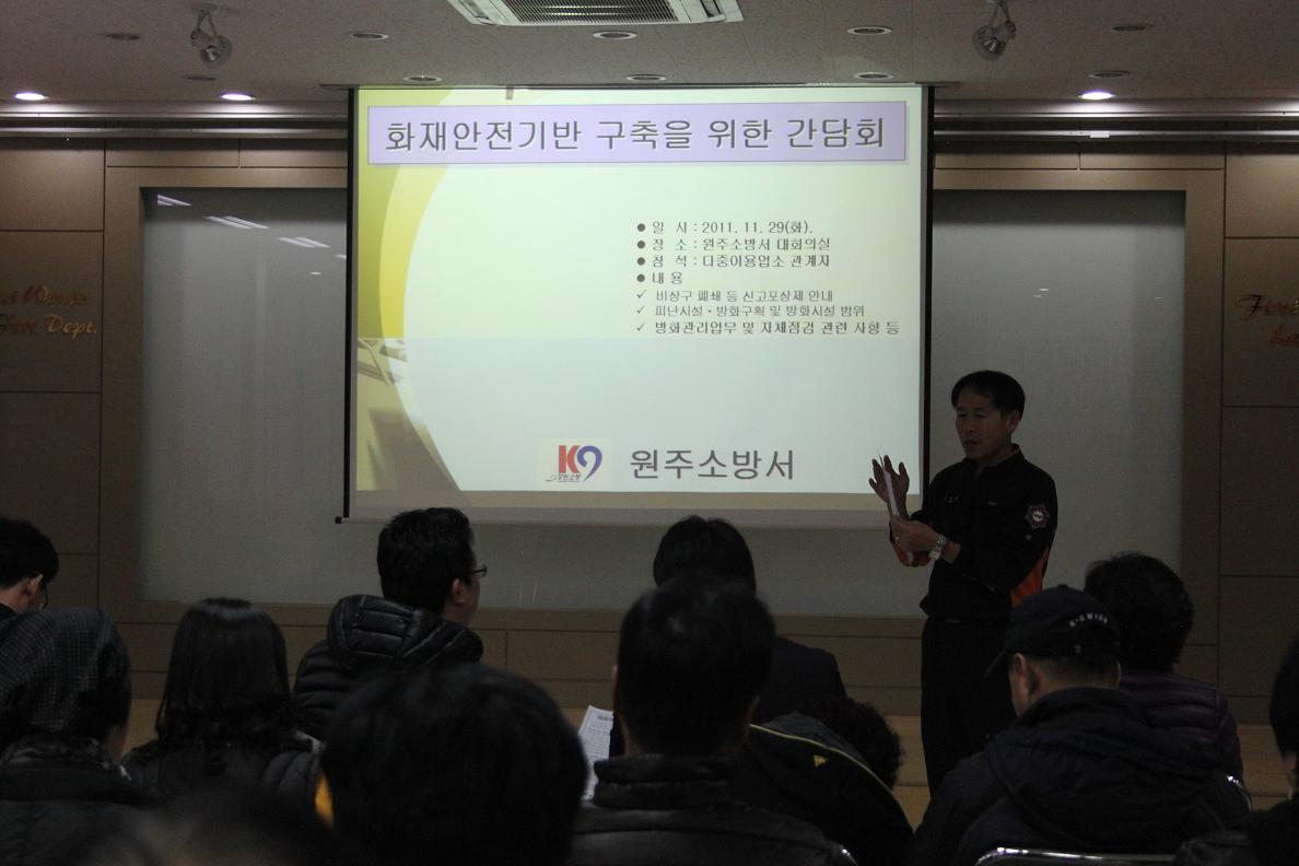 | 14272 | 비상구 안전관리 강화를 위한 간담회 개최 | 원주소방서 | 2011-11-29 | 180 | |