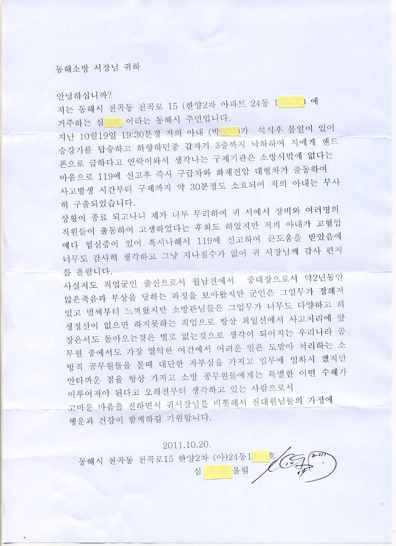 구조구급 수혜자로부터 온 감사의 편지