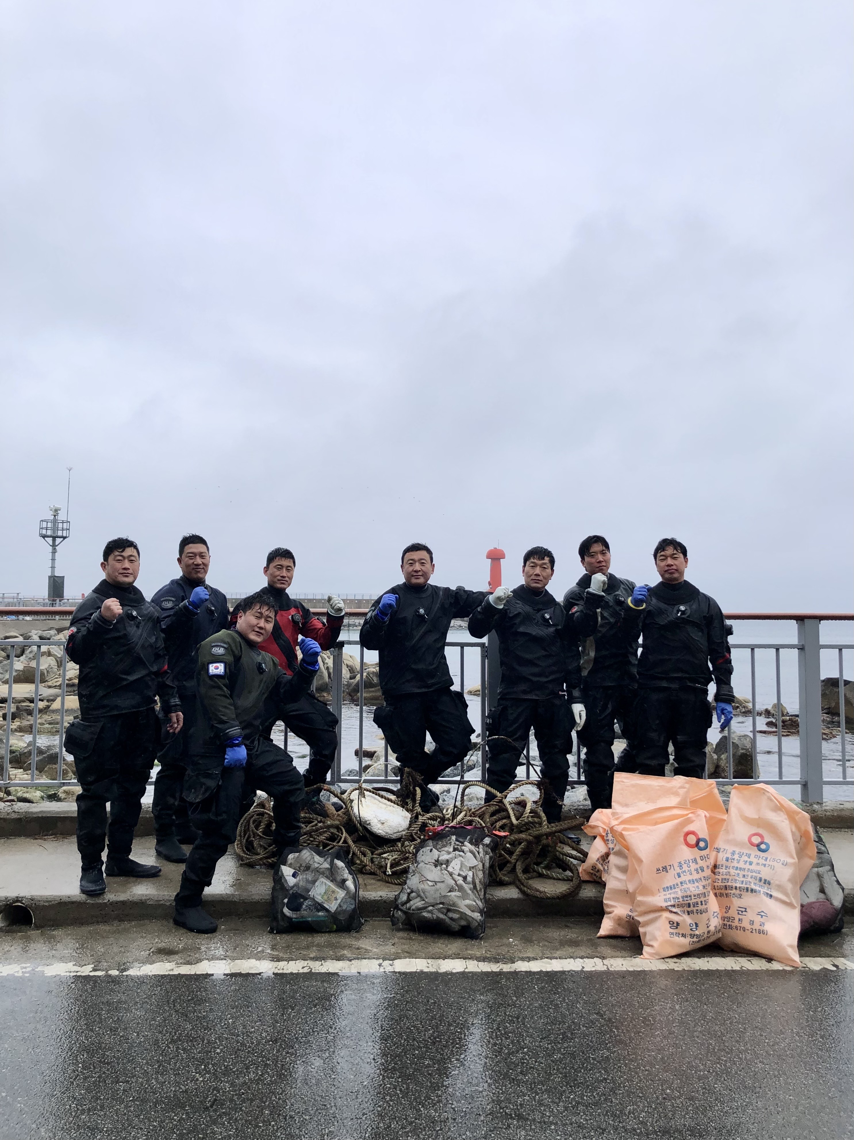 원도보이즈 다이빙 팀 "삼척소방 경영규, 강원소방학교 강영석, 정호진, 김상호, 양양소방 이해길, 특수대응단 박형기, 이윤복, 환동해대응단 박두철" 8인의 바다 영웅들이 양양 남애 스쿠버로 와주셔서 수중정화활동을 해주셨습니다.
