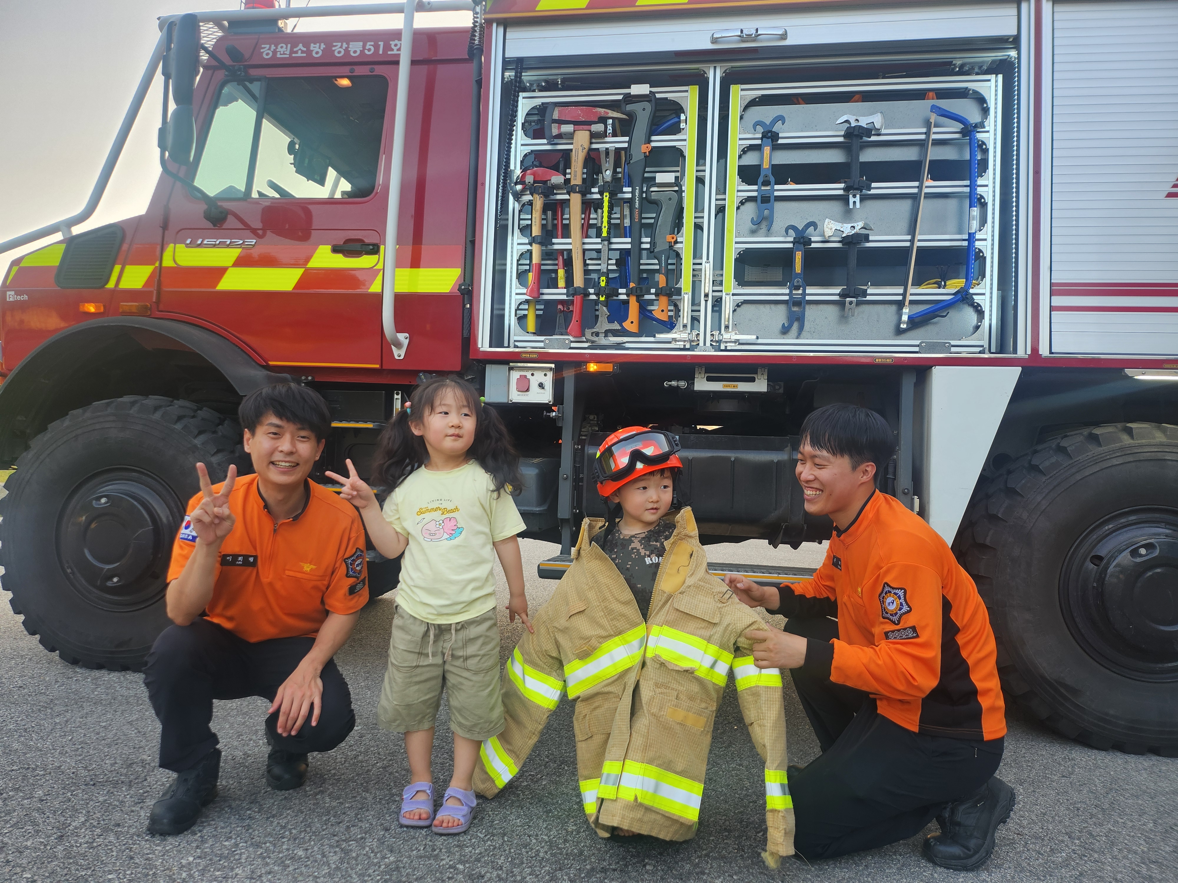 덕분에 소방관이 되고 싶다는 두아이의 꿈이 한뼘 더 자라는 오늘이 되었답니다.