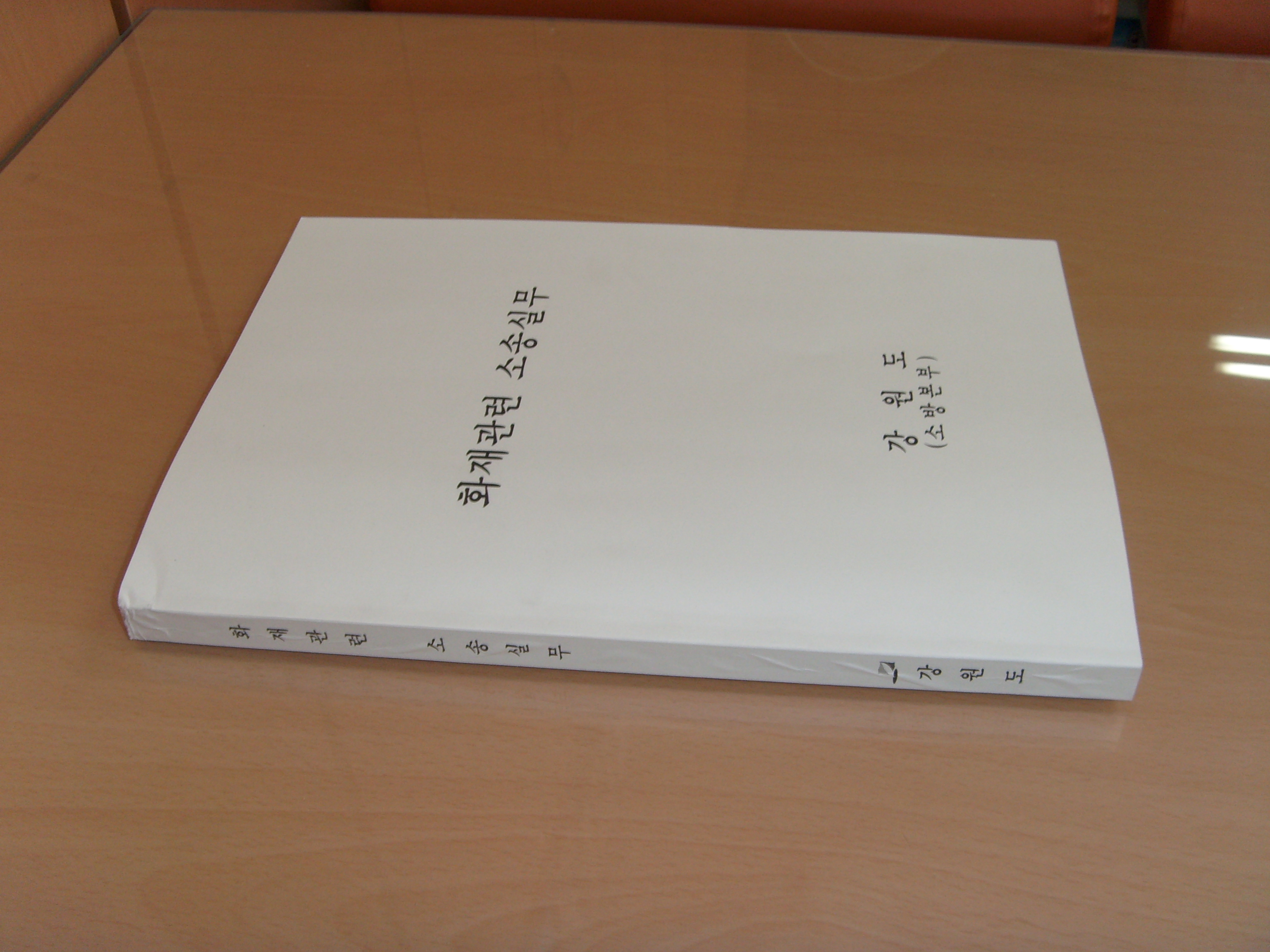 강원도 소방본부 본부장 【왕재섭(王在燮)】은 2010년 6월29일(화) 화재진압 및 예방행정, 제조물 책임법 등에 의한 화재조사와 관련된 소송사례 및 분석을 통하여 향후 발생할 수 있는 법률분쟁 등의 대비?활용하기 위한 『화재조사 소송실무』책자 130부를 제작 11개소방서에 배부하였다.