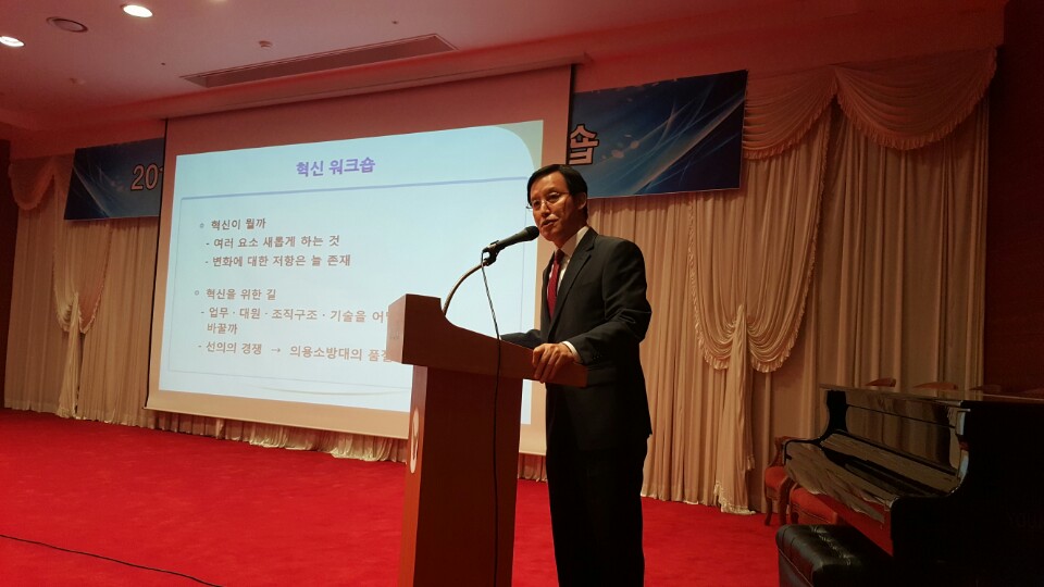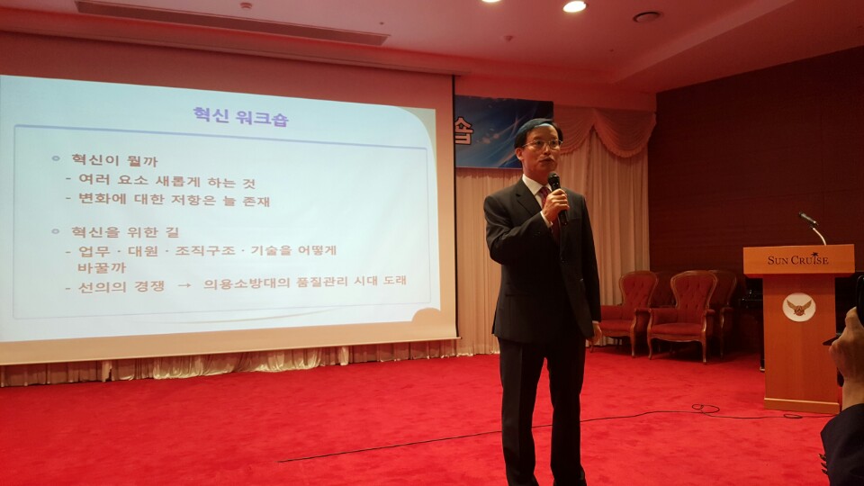 조송래 국민안전처 중앙소방본부장이 25일 오후 6시 전국 의용소방대연합회 워크숍에서 '혁신을 통한 조직역량 강화방안'이라는 주제로 특강을 실시하였다.