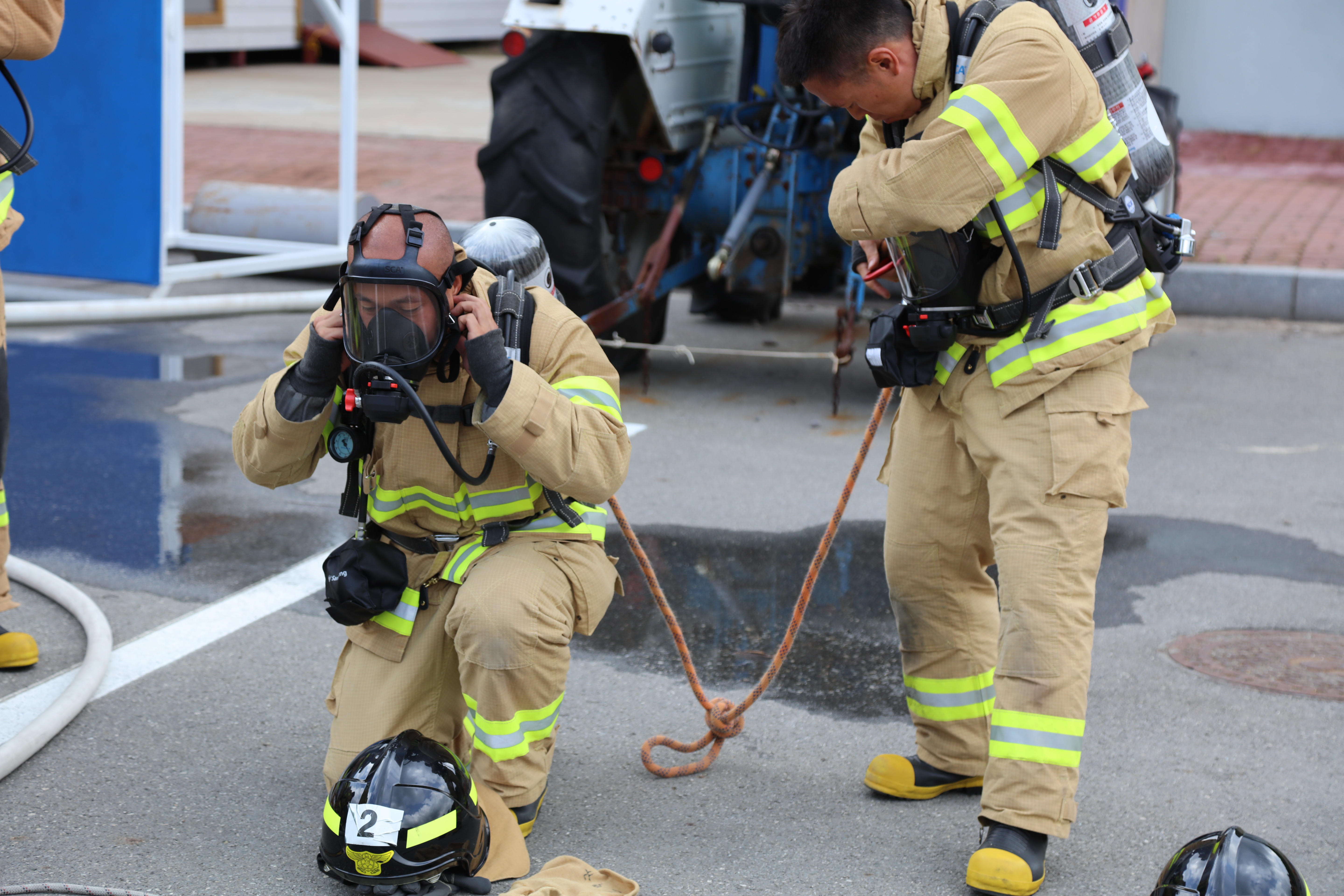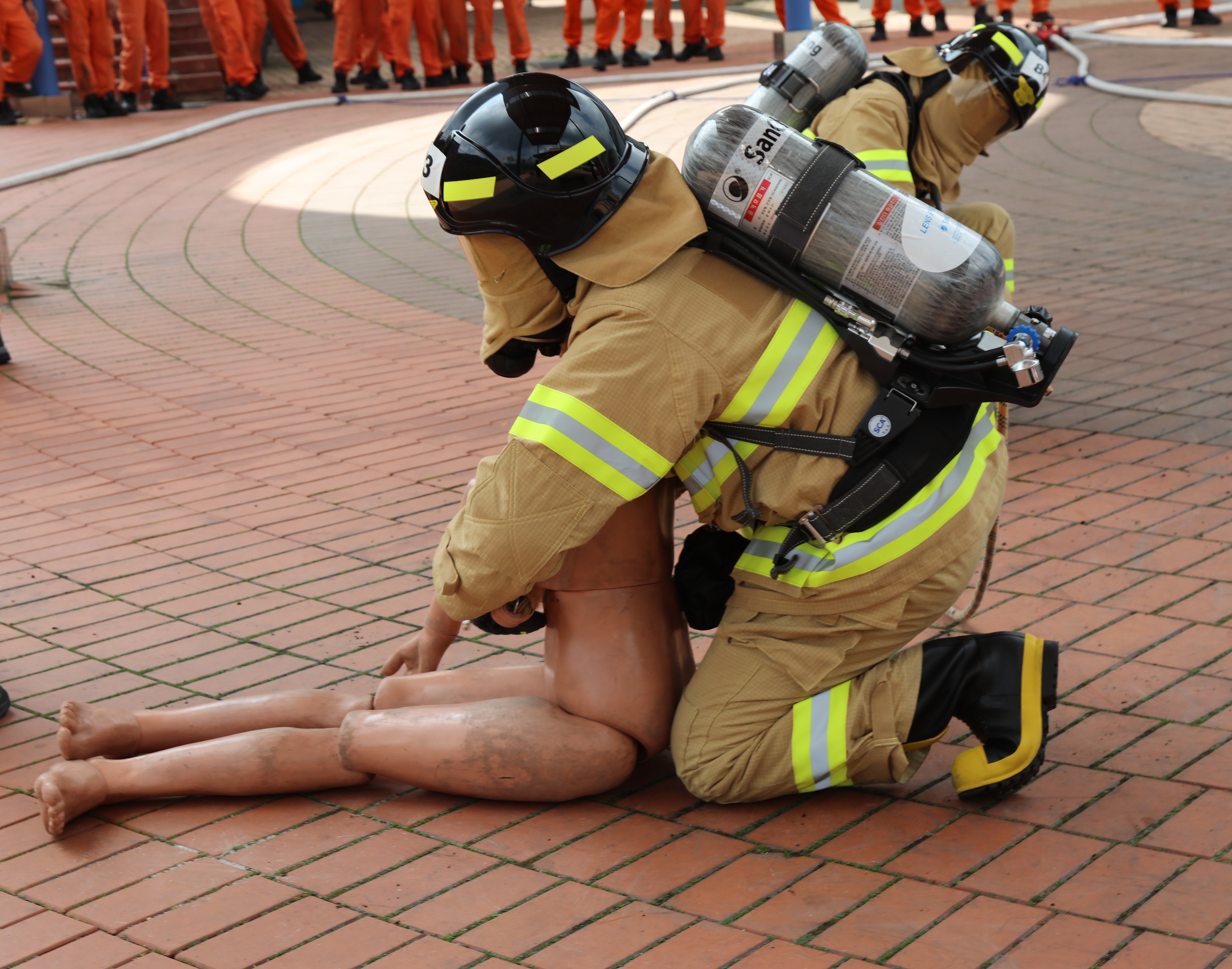 더위를 잊은 채 실전 같은 신임 소방관들의 훈련
