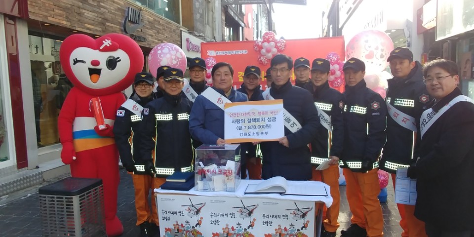 강원도소방본부(본부장 이흥교)는 19일 오후 2시 춘천시 명동거리에서 대한결핵협회 강원도지회에 결핵퇴치 성금을 전달하였다.