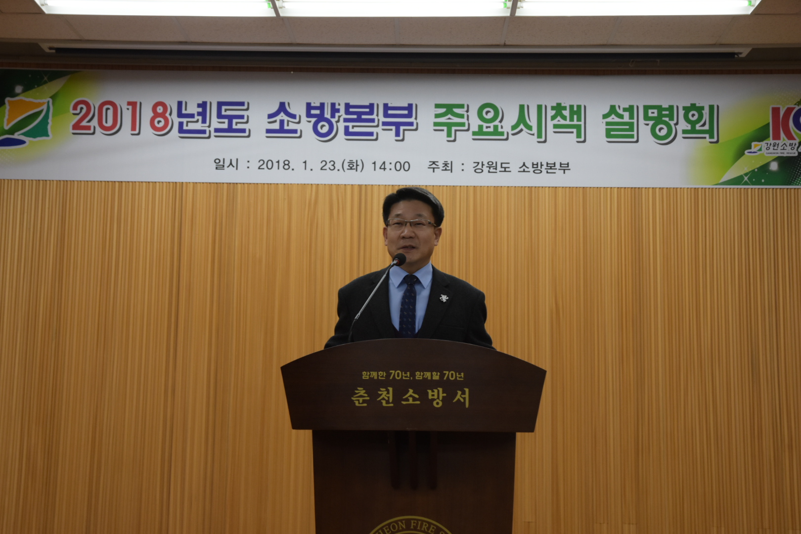 도 소방본부(본부장 이흥교)는 23일 춘천소방서 대회의실에서 2018년도 주요시책 설명회를 개최했다.