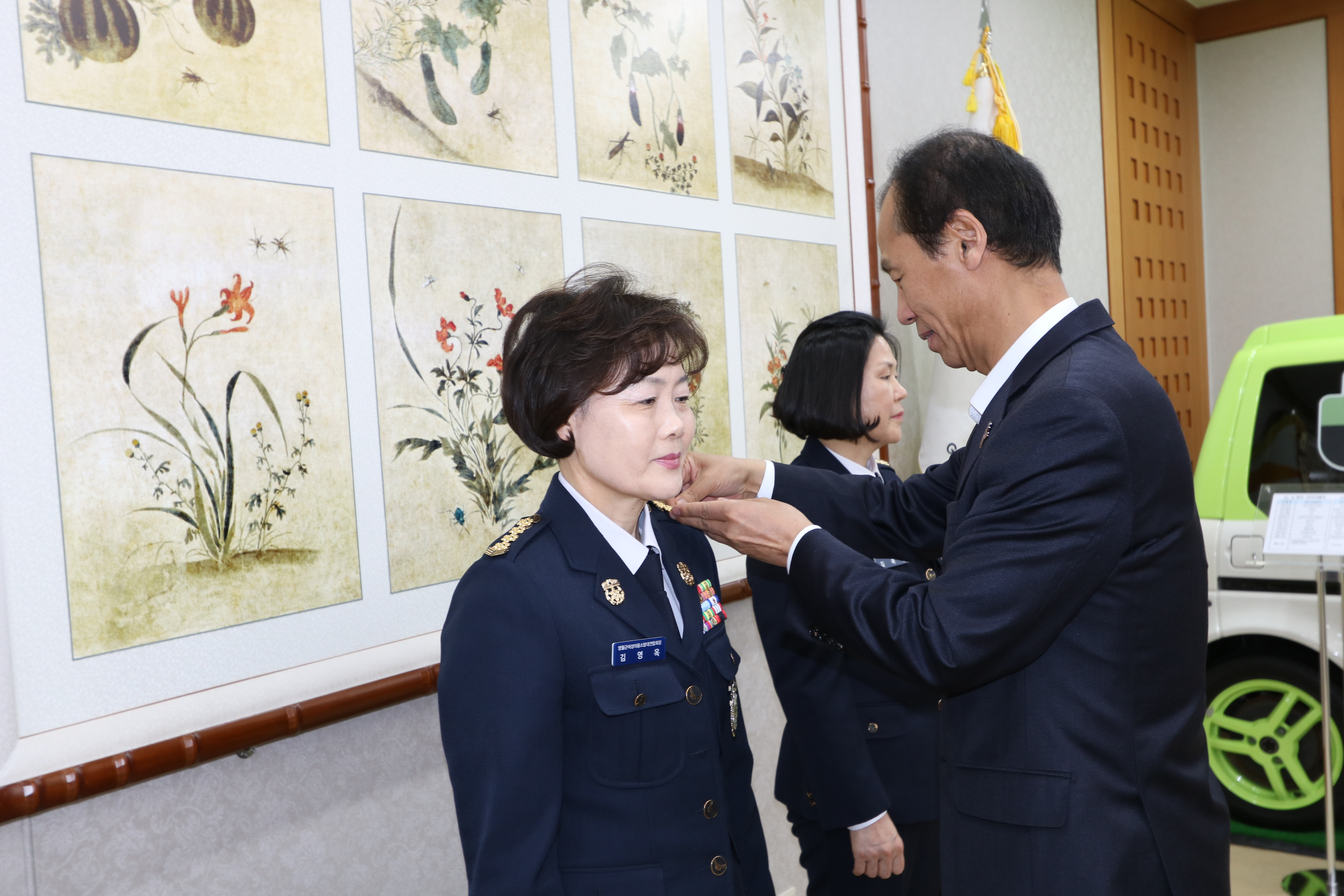 강원도소방본부(본부장 이흥교)는 27일 오후 2시 도청 통상상담실에서 최문순 도지사, 이흥교 소방본부장, 김용기 도남성의용소방대 연합회장이 참석한 가운데 김영옥 도여성의용소방대연합회장 및 김옥렬 도여성의용소방대연합회 부회장에 대한 도지사 임명장 수여식을 가졌다.