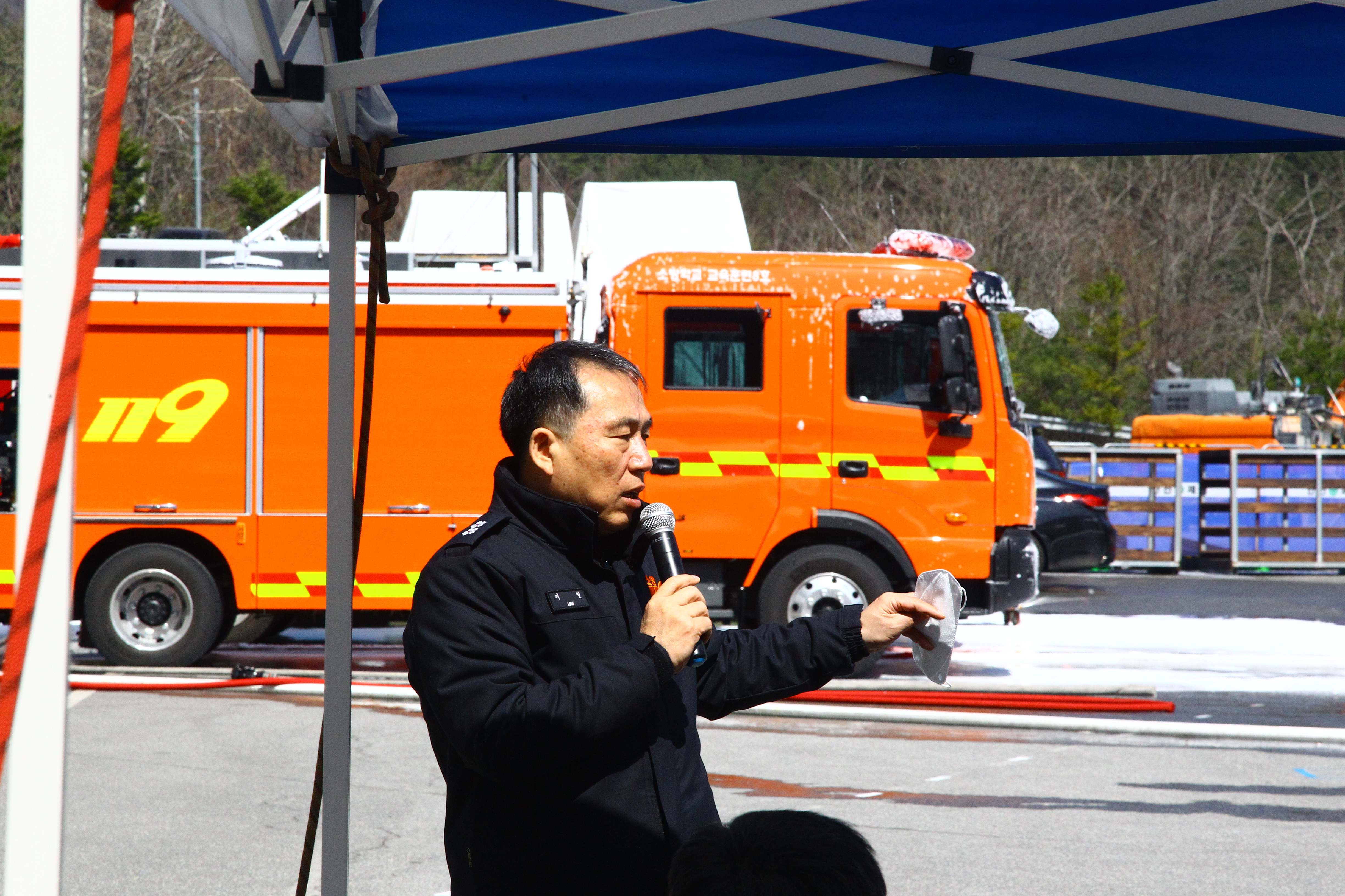 ○ 이일 강원도소방본부은 3월 30일 11시 강원도소방학교에서 개최된 CAFS시스템 장착 소방펌프차 성능비교 시연회를 참관하고 소방본부 및 소방학교의 교관들과 의견을 나눴다.