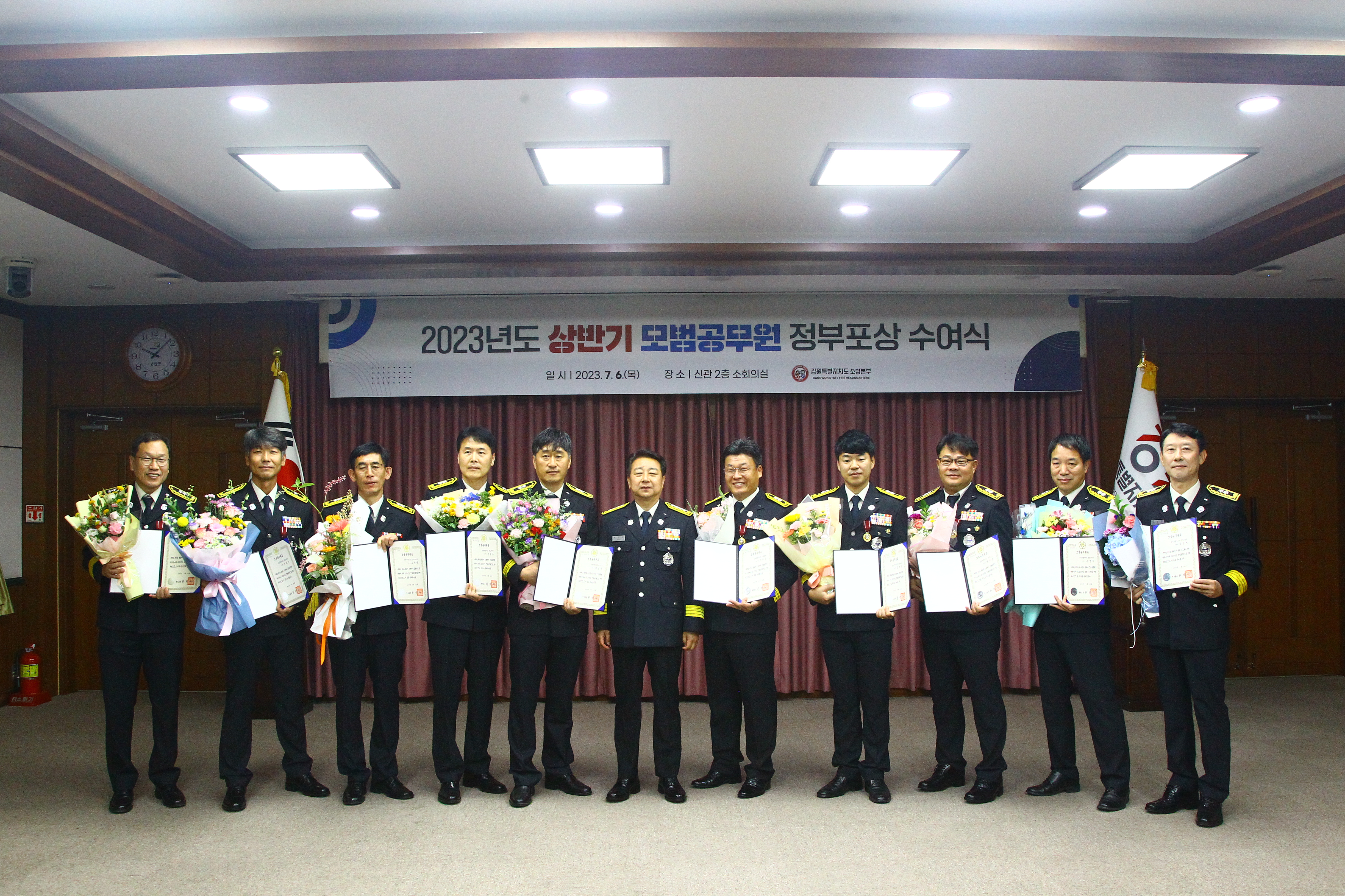 ○ 강원특별자치도소방본부는 6일 10시에 도청 신관 소회의실에서 2023년도 상반기 모범공무원에 대한 시상식을 개최했다.