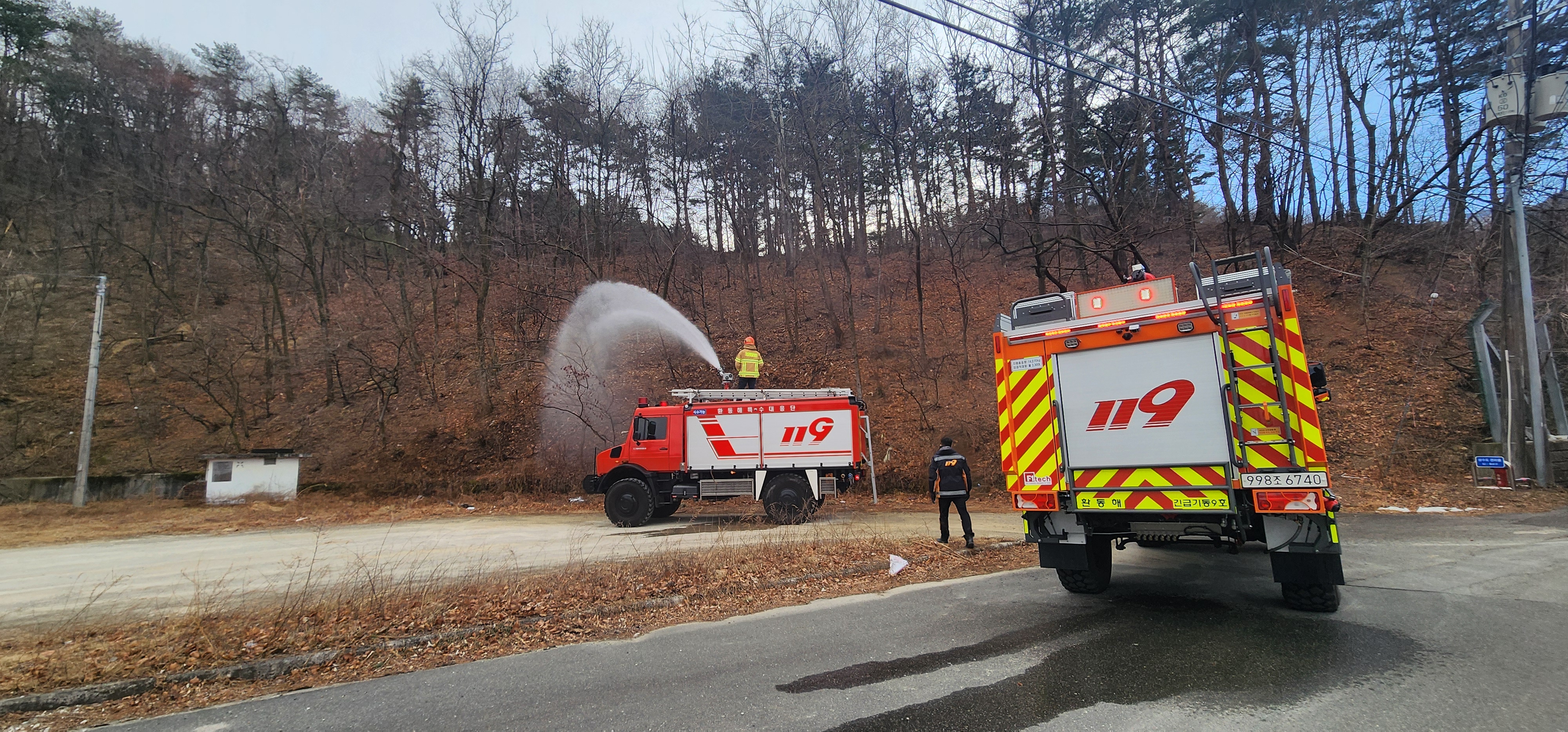 ○ 특히 기상특보 발효 등 산불 위험이 높은 시기에는 비상소화장치를 활용해 산림 인접 주요 시설을 대상으로 ‘예비주수’를 실시함으로써, 소방차 도착 전 골든타임을 확보하고 산불 발생 시 화염의 비화를 사전에 차단할 계획이다.
