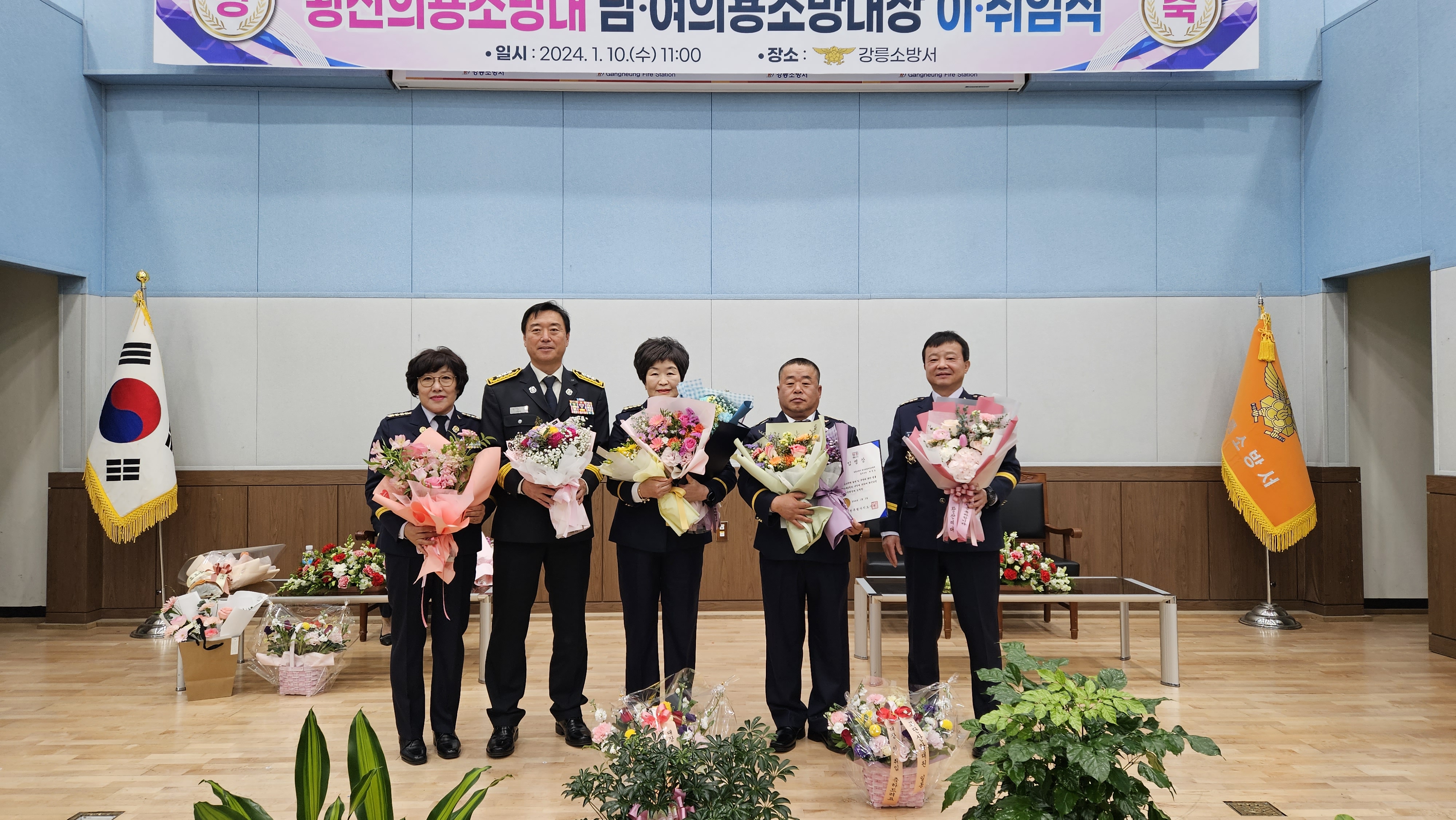 1.10.(수) 강릉소방서 대회의실에서 왕산면 남녀의용소방대 대장 이 취임식 행사가 개최되었습니다.