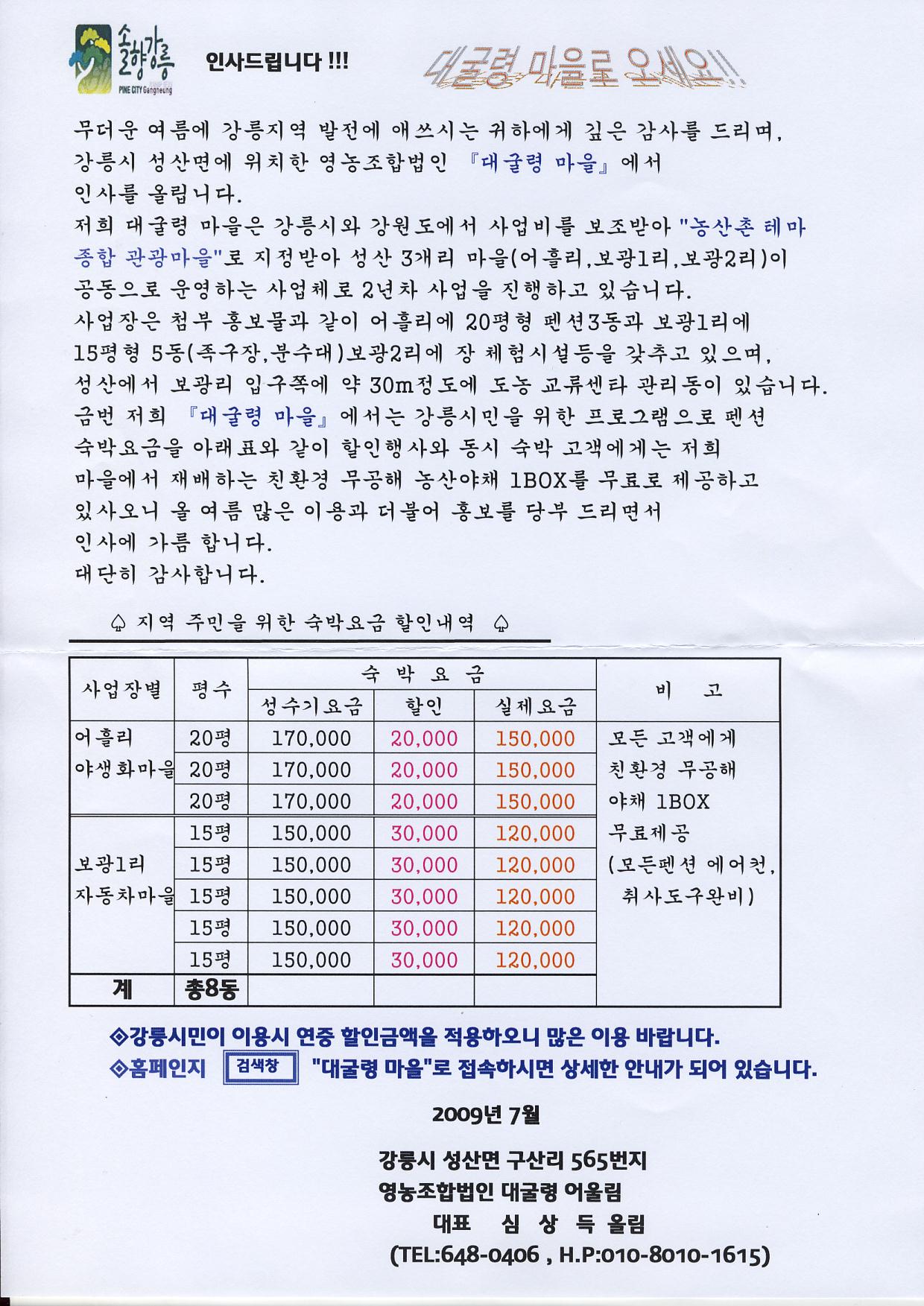 대굴령마을 펜션알림