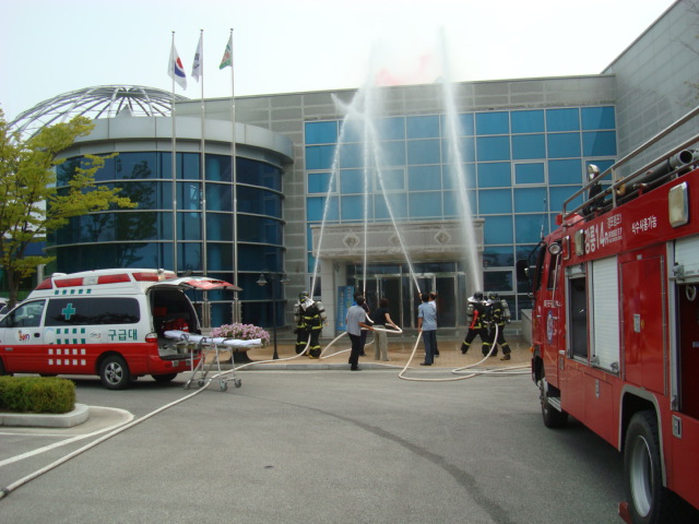 소방공무원 7명, 자위소방대 7명 및 의용소방대 2명, 총 16명과 소방차량2대(펌프차량, 구급차량)를 이용한 이번 훈련은 화재취약요인 분석 및 초기대응역량 강화를 위해서 실시되었다.
