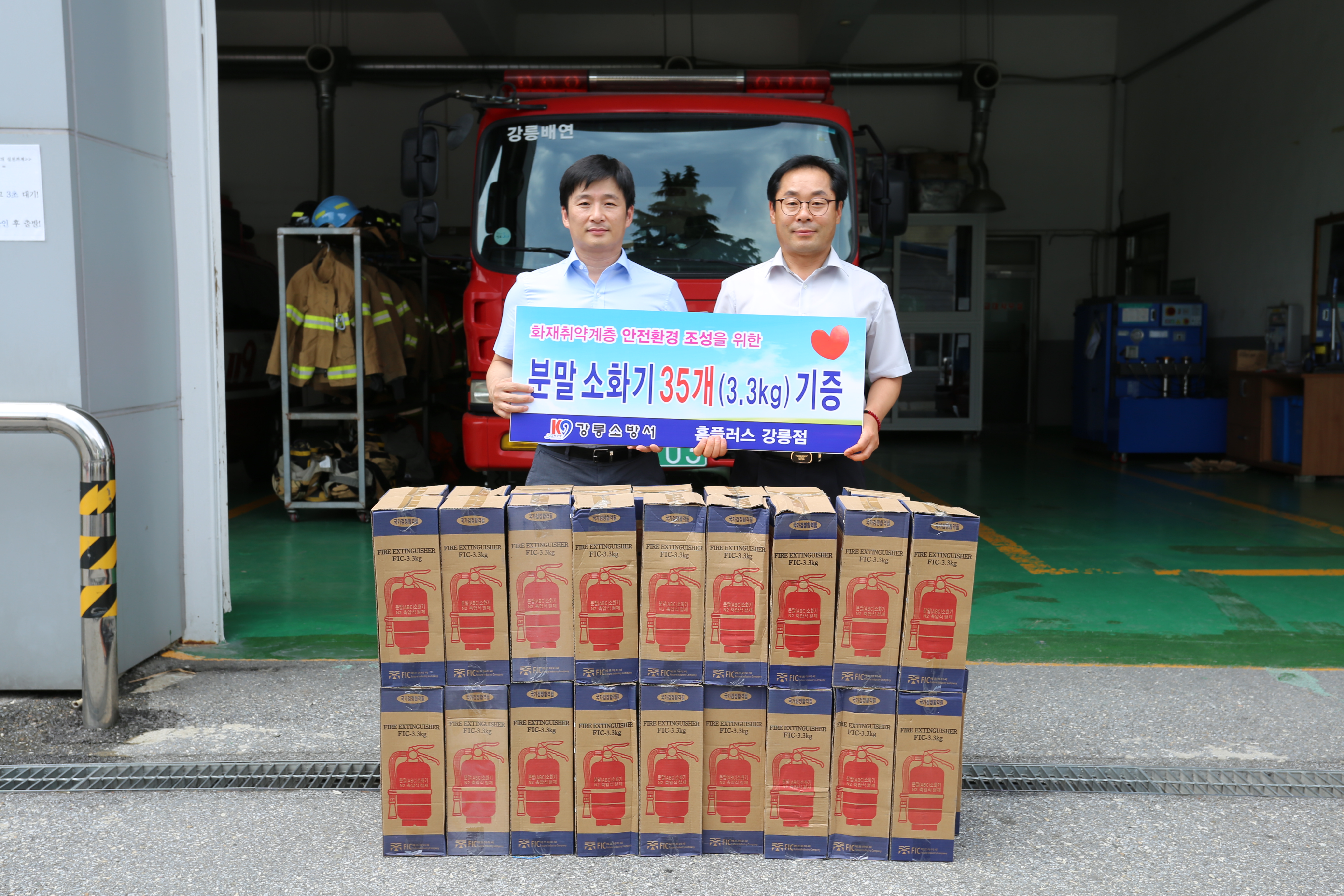 강릉소방서, 홈플러스 강릉점 취약계층 지원을 위한 소화기 기증