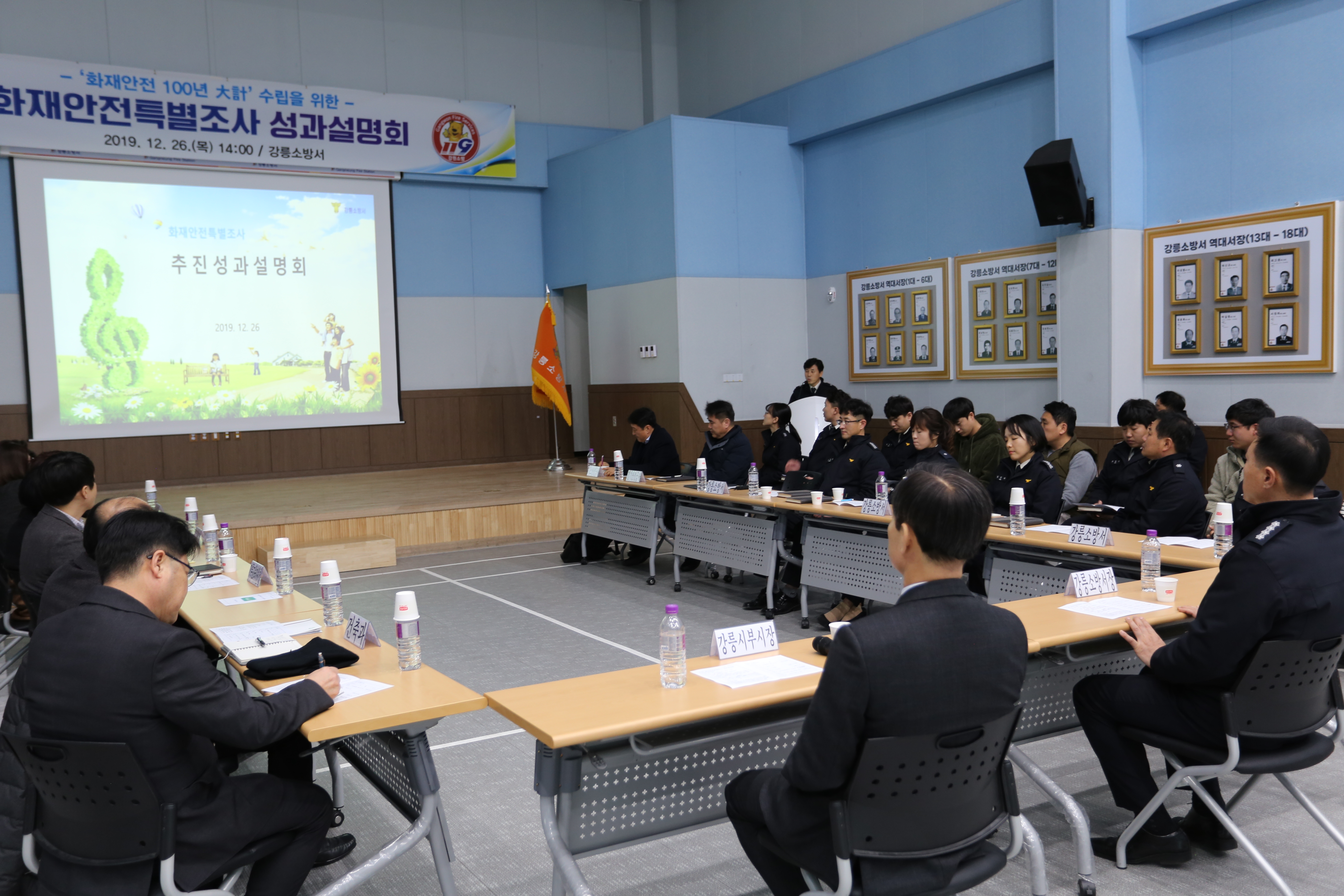 2019.12.26.(목) 14:00 강릉소방서 대회의실에서 화재안전특별조사 성과설명회를 개최하였습니다.