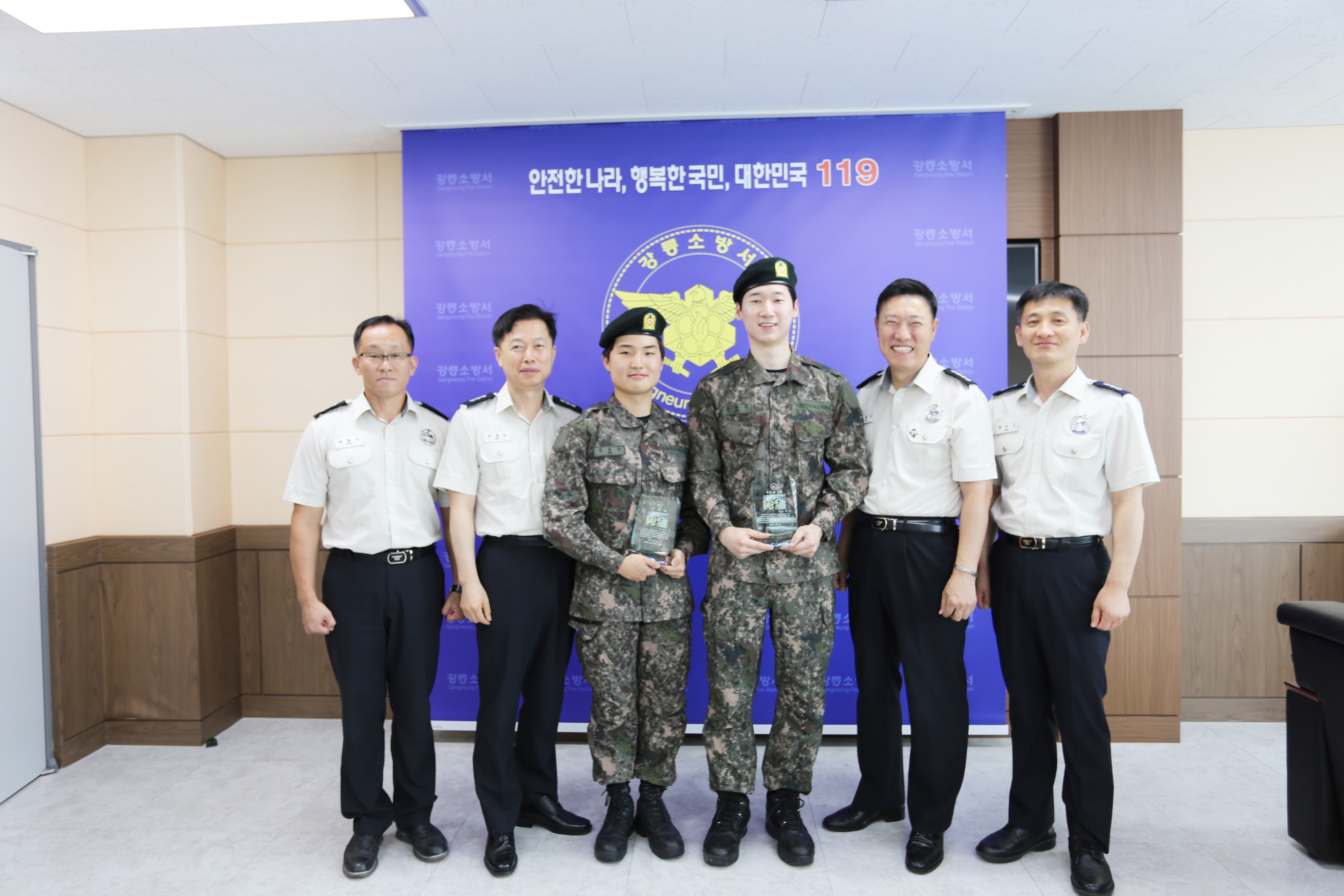 2020년 7월 21일 강릉소방서 서장실에서 의무소방원 전역식이 개최되었습니다 !