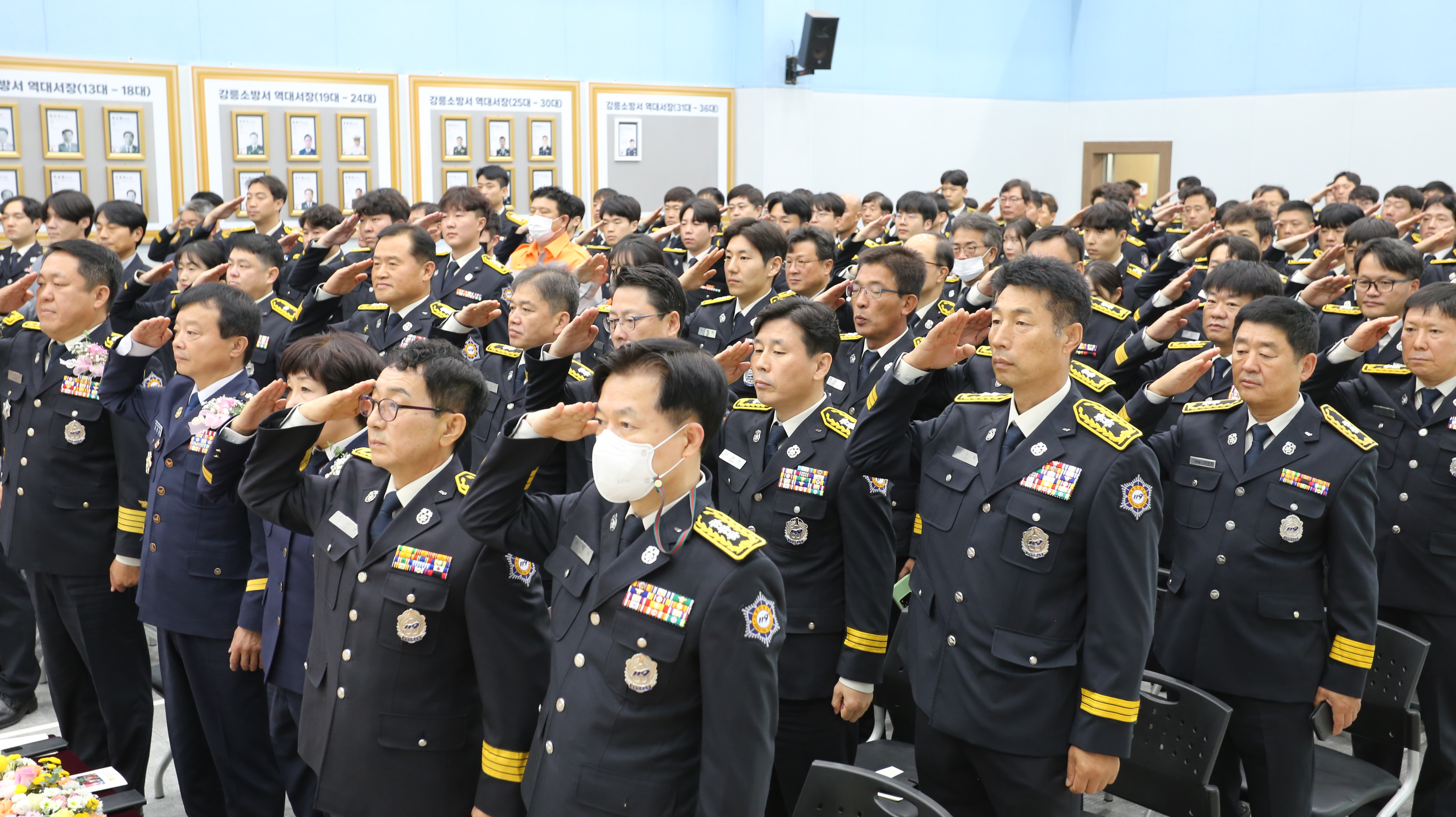 지난 9일 강릉소방서 소방의날 기념식 단체 사진입니다.