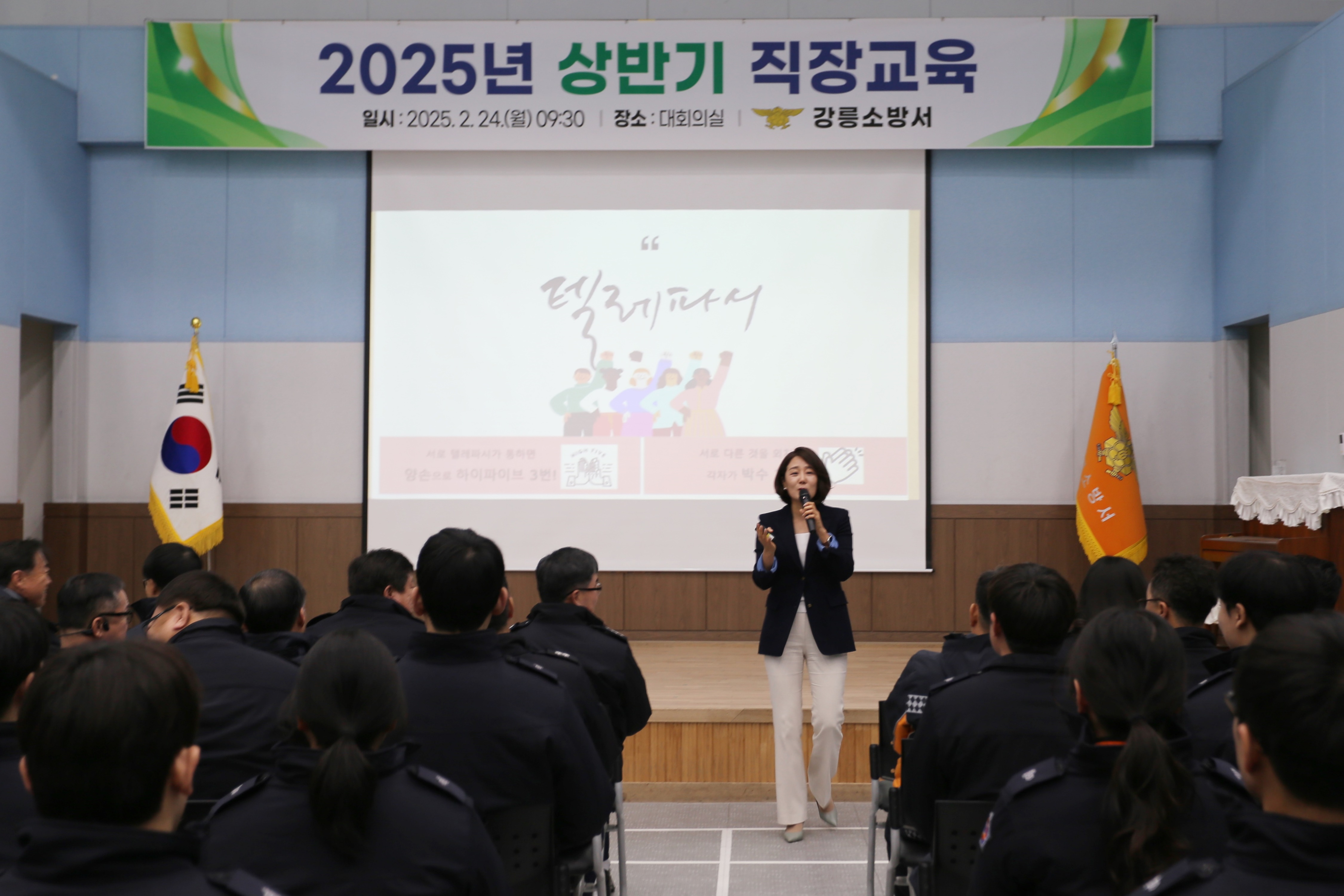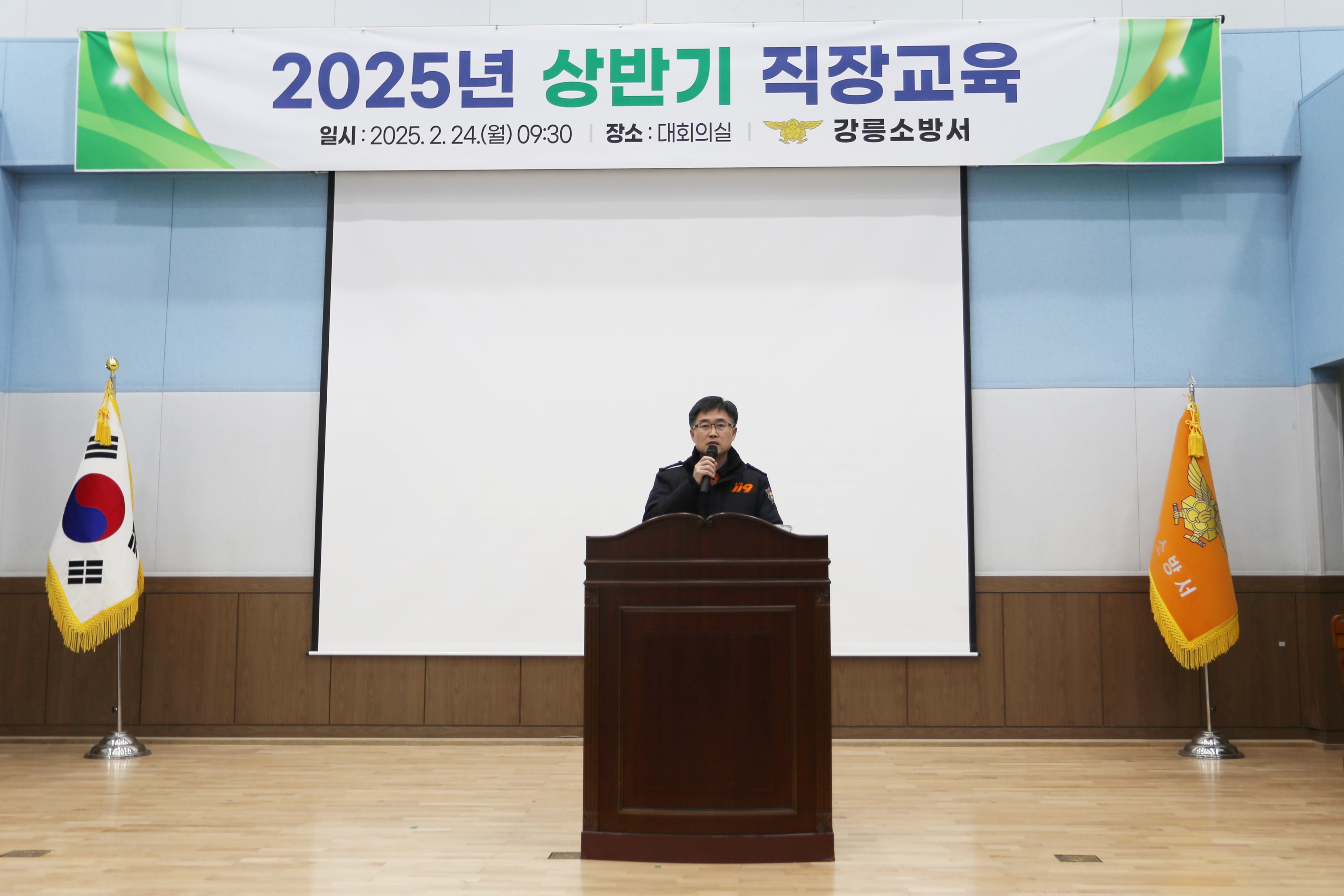 2025. 2. 24.(월) 09시 30분 강릉소방서 대회의실에서 올바른 공직가치확립을 위한 2025년 상반기 직장교육을 실시하였습니다.