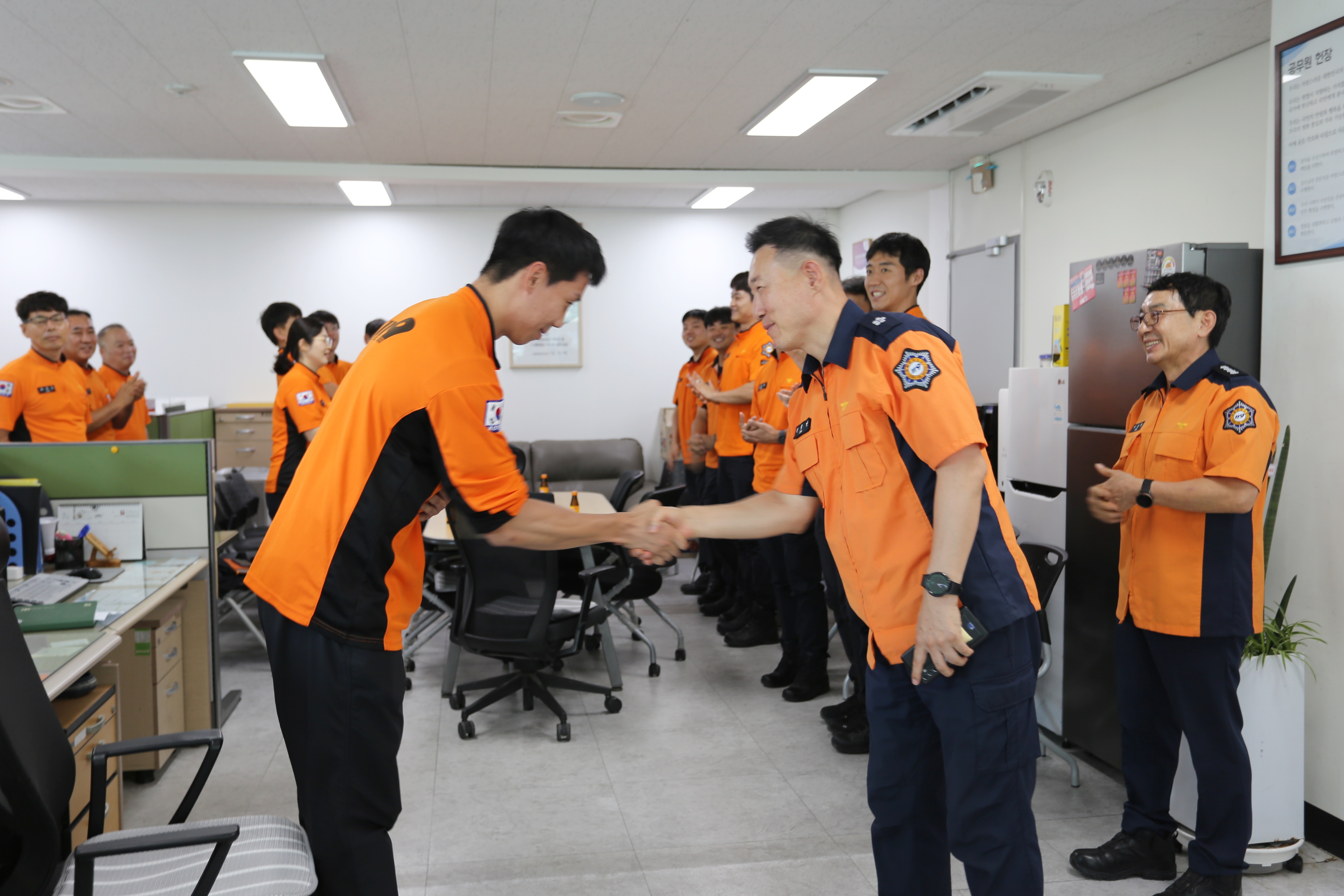 오늘 오후 1시 진형민 소방청 대응총괄과장이 폭염 대응체계 점검 및 현장대원 격려차 강릉소방서를 방문했습니다.