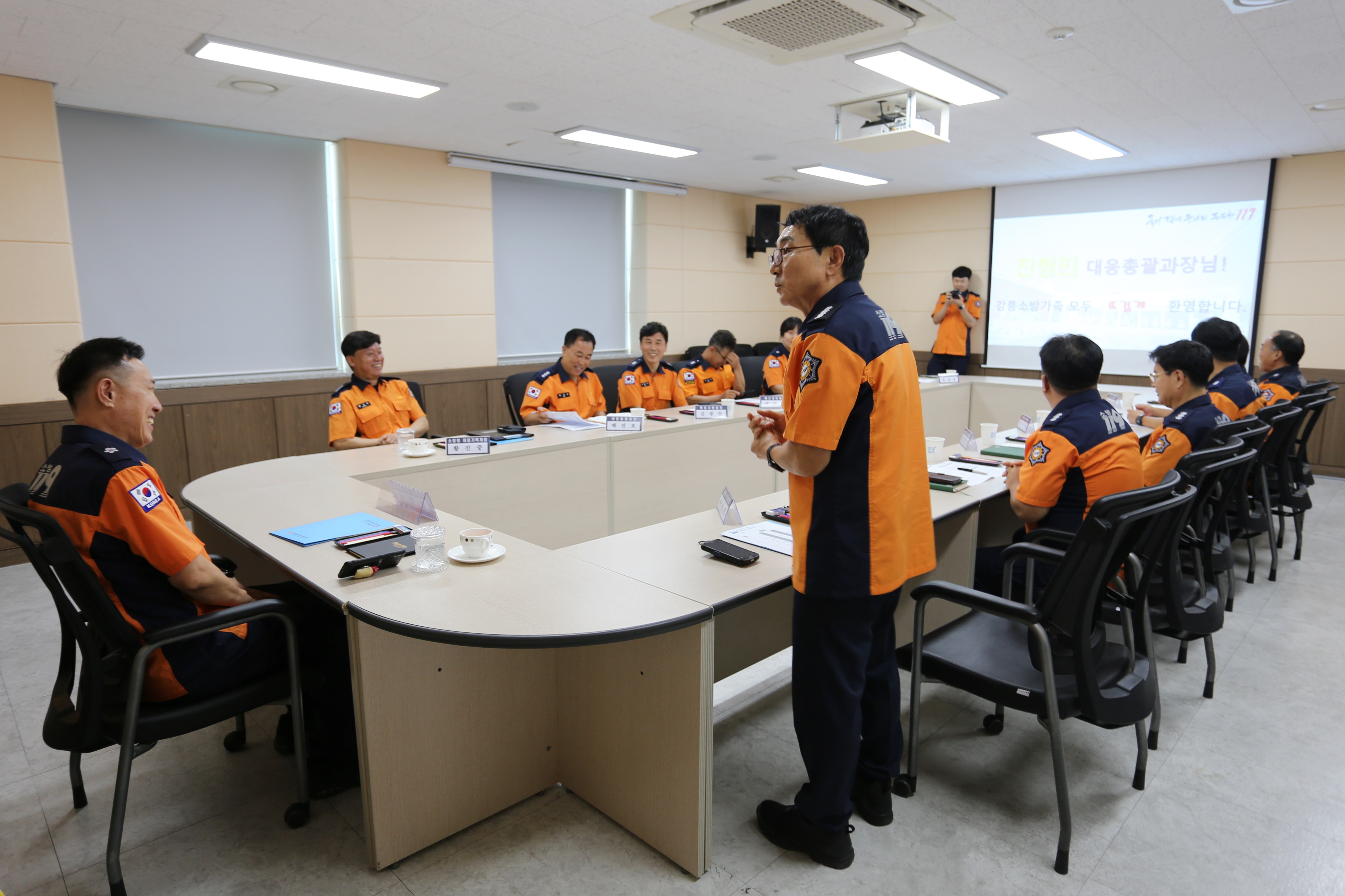 대회의실에서 이상현 서장으로부터 폭염 대응 안전관리대책을 보고받고 애로사항을 청취하였습니다.