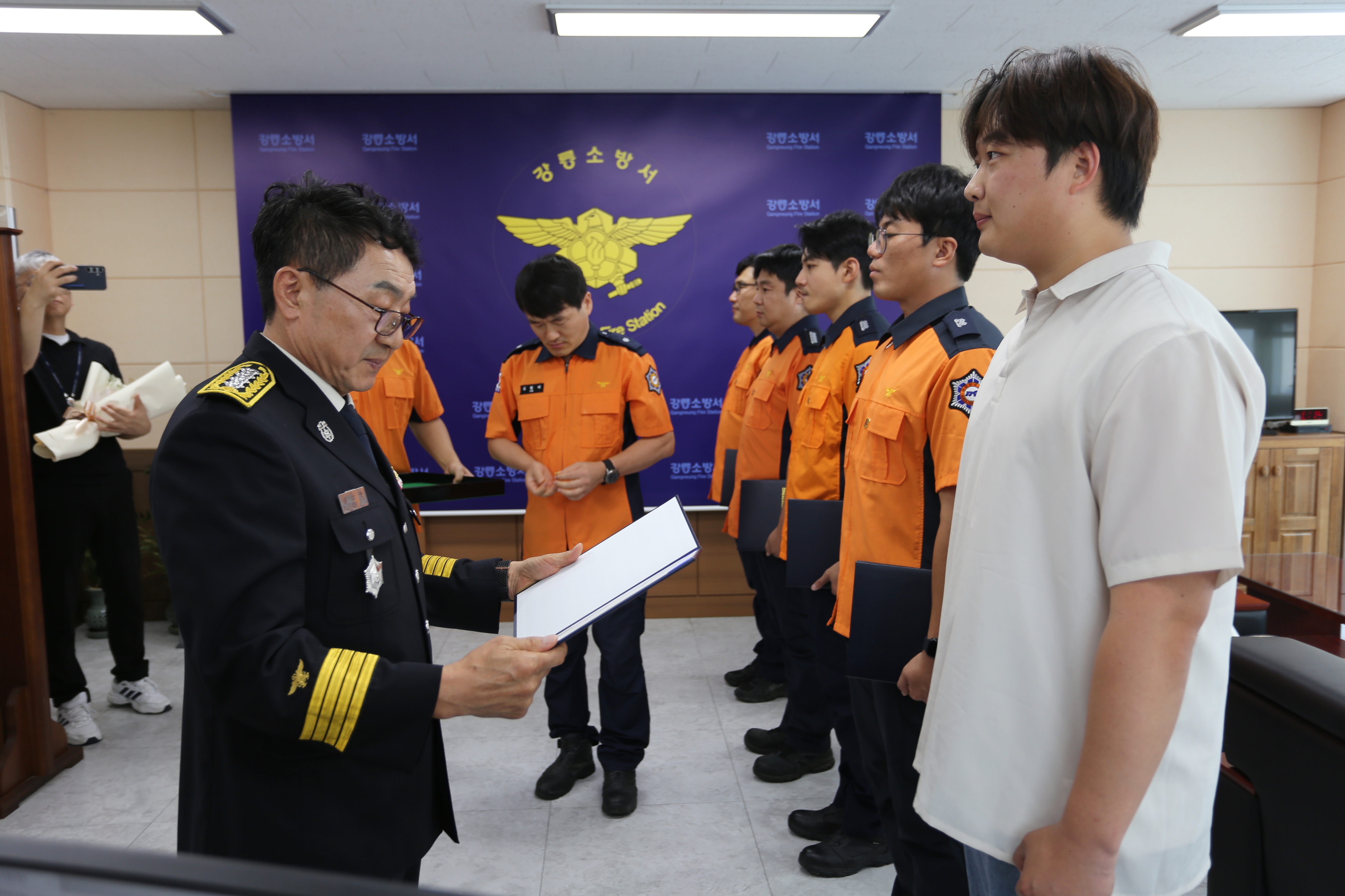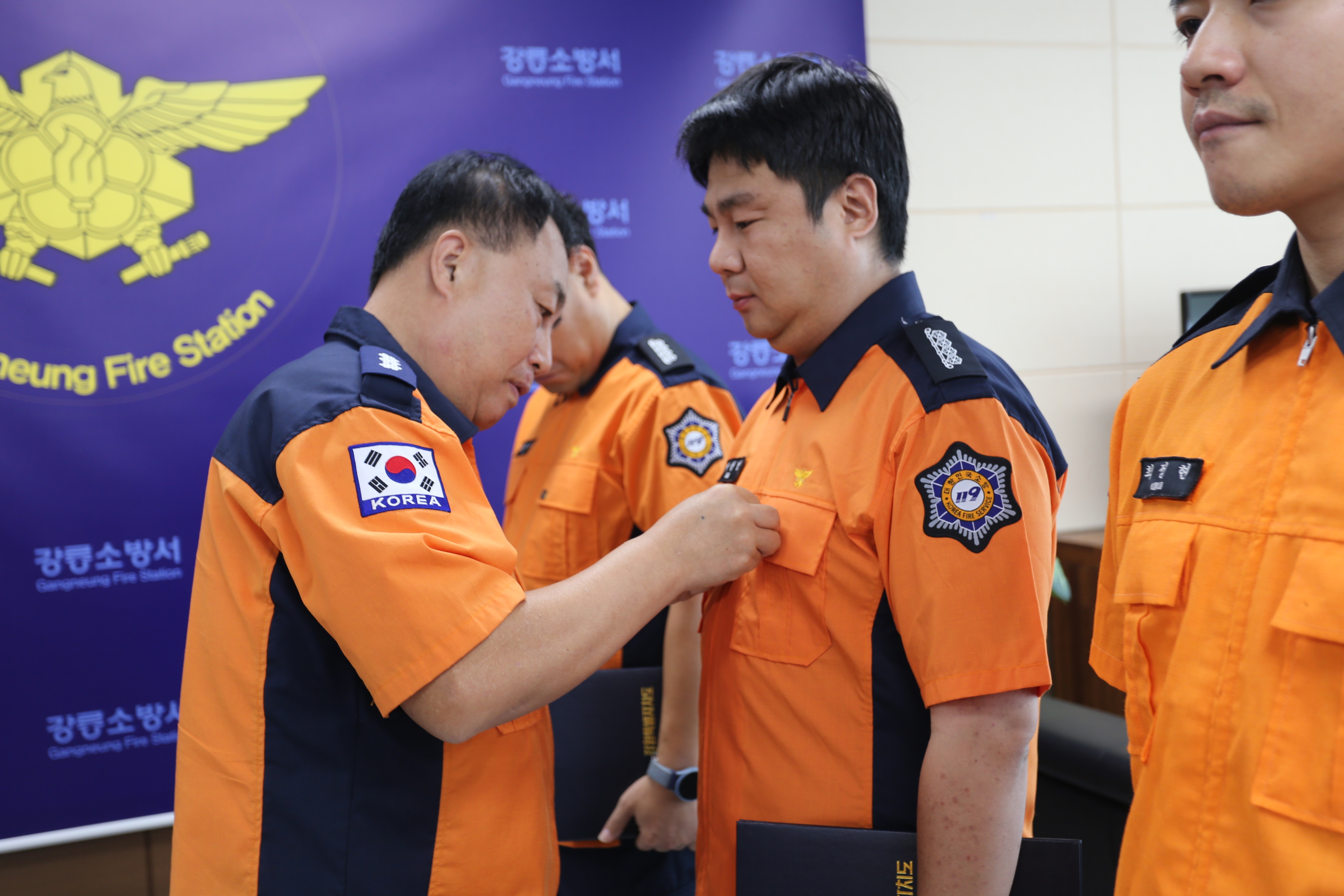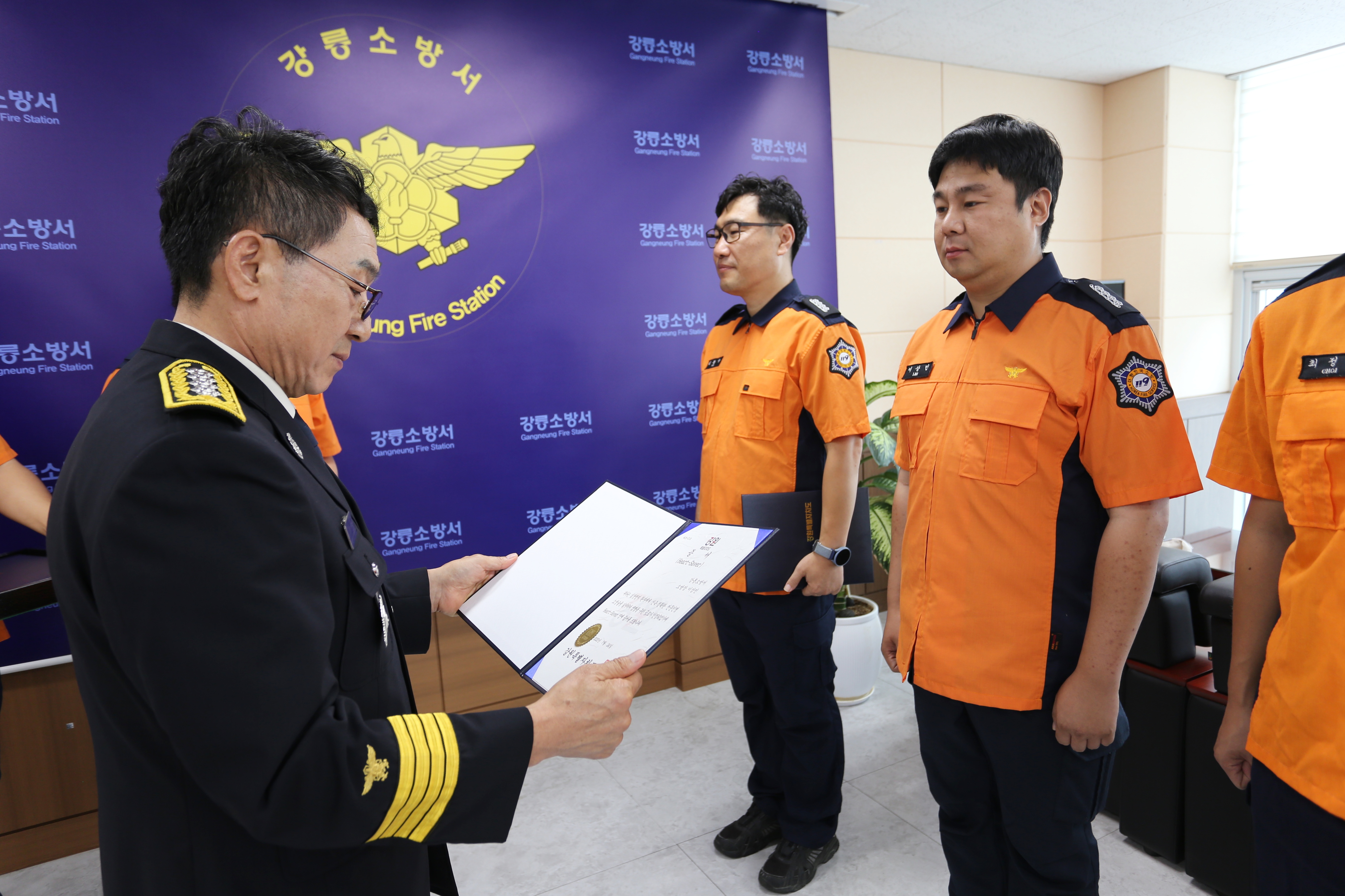 이날 수여식에는 강릉시청 김선희 행정지원과장이 참석하였으며, 하트세이버로 선정된 대원은 ▲소방장 김창규 ▲소방장 이상민 ▲소방교 최정현 ▲소방사 김창빈이 선정됐으며, 일반인은 ▲강릉시 소속 청원경찰 곽선규님이 선정되었습니다!