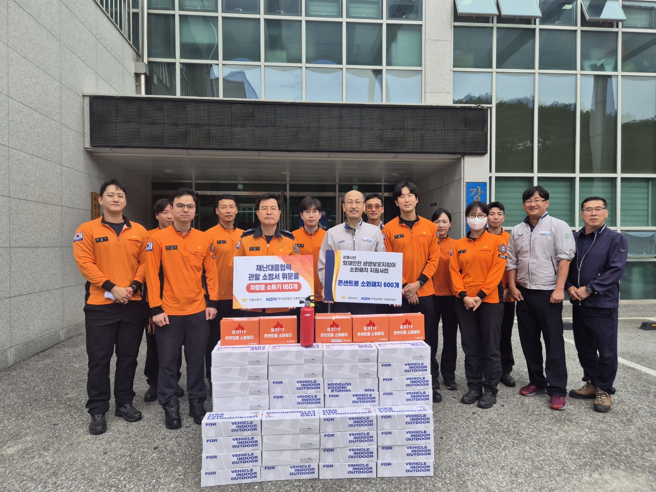 강릉소방서는 22일 한국남동발전 강릉발전본부로부터 차량용 소화기 160점과 자동소화패치 600점을 기증받았습니다.