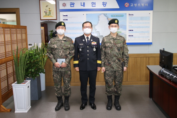 고성소방서(서장 유중근)는 18일 오전 9시 서장실에서 병역의무를 성실히 마친 제62기 의무소방원 2명에 대한 전역식을 가졌다고 밝혔다.
