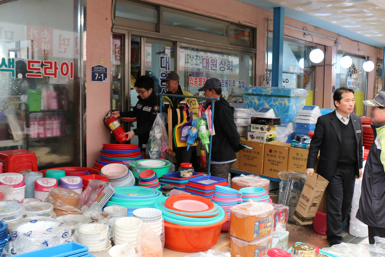 고성소방서에서 간성시장에 신규로 소화기를 설치했습니다