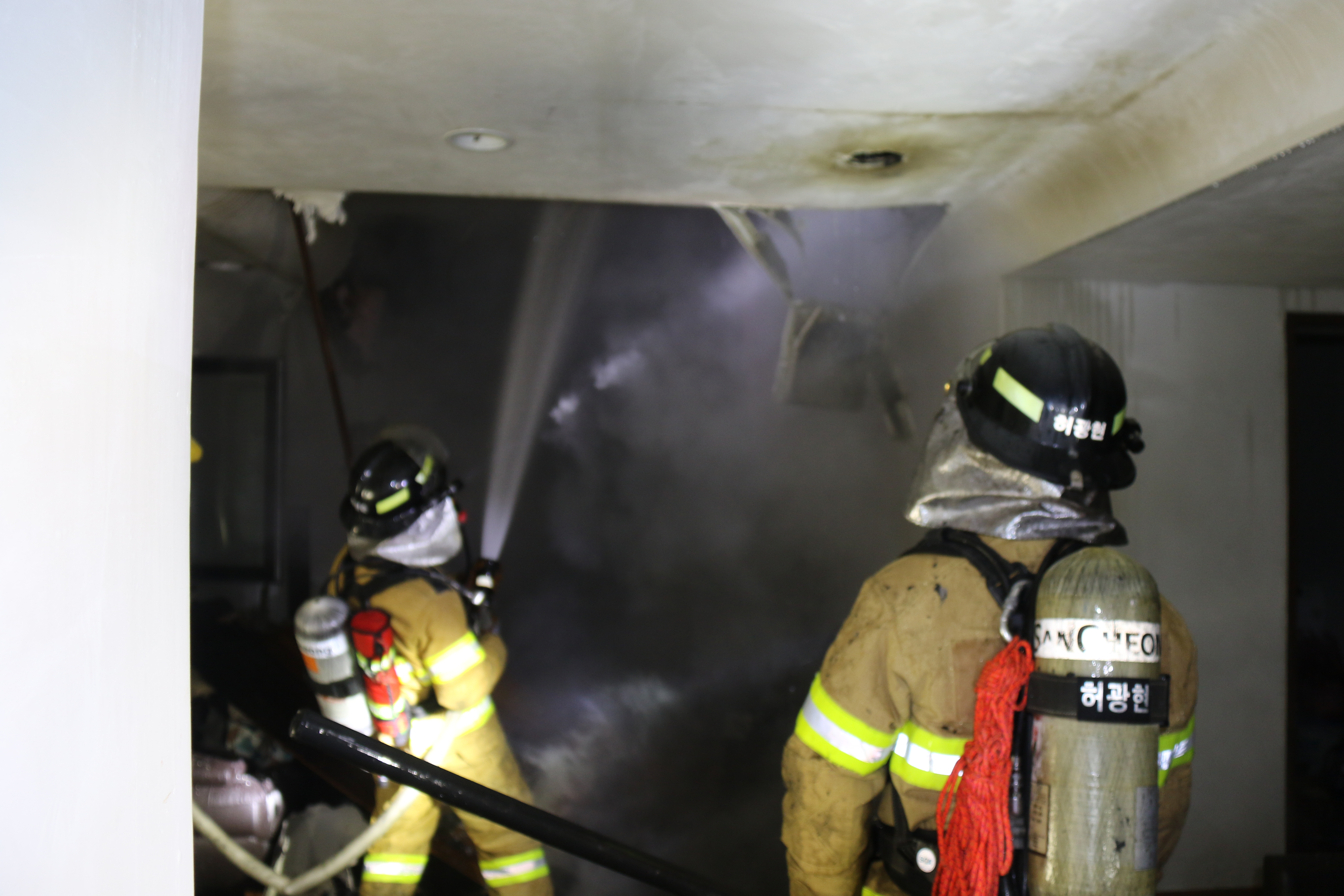 주택이 화재진압에 까다로운 구조라 대원들이 힘들었지만 건물을 지켜냈고