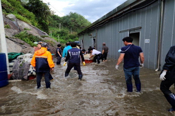 현내면 초도항 일대에 현내남성의용소방대원 9명이 복구 지원활동에 나섰다고 밝혔다.