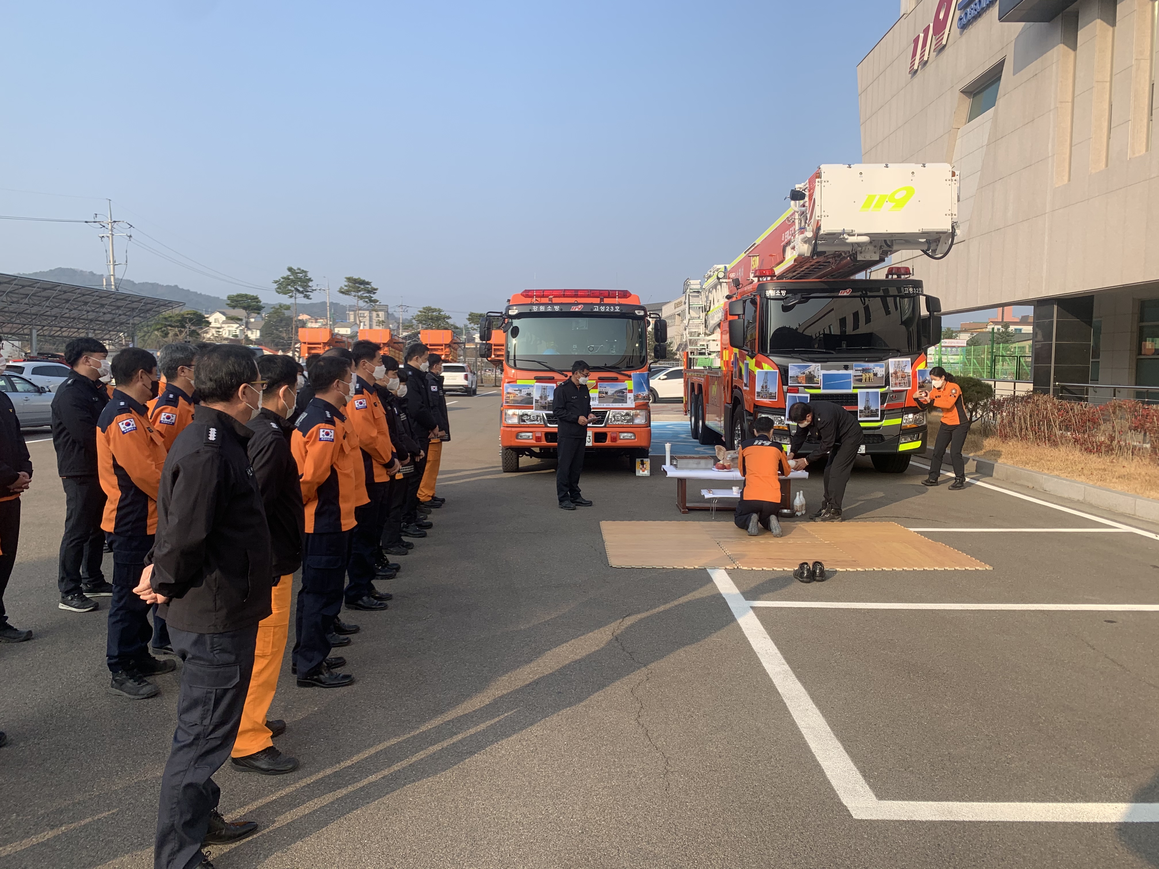 고성소방서(서장 유중근)는 16일 오전 소방자동차 신규배치에 따른 안전기원 행사를 진행했다.