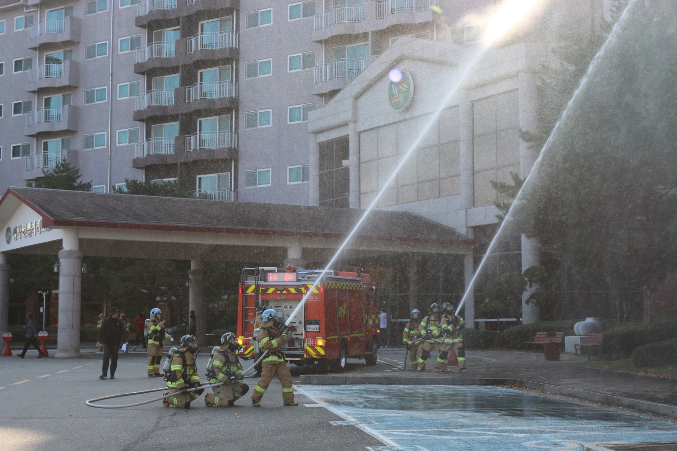 이번 훈련은 숙박시설 및 도심형 산림화재 복합재난 대응훈련으로 진행됐으며 속초시와 고성군 내 23개 유관기관에서 장비 72대, 인원 362명이 참여했다.