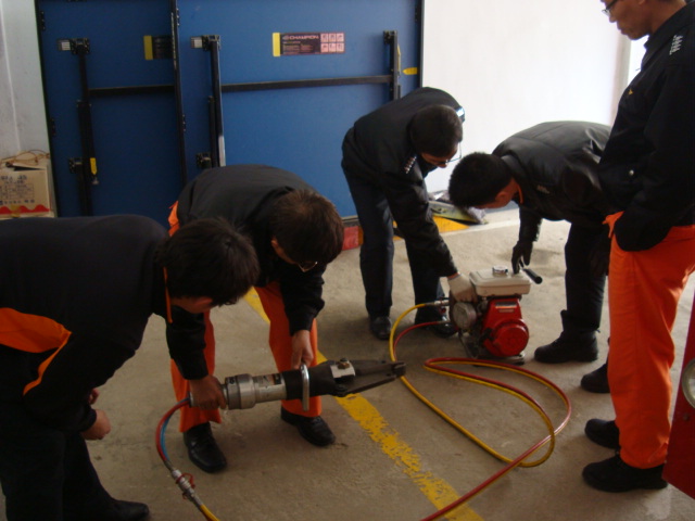 소방대원들이 유압장비 실습훈련 실시하였습니다.