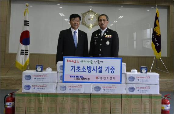 (주)하이트맥주 홍천공장(구자윤 공장장)은 29일 오전11시 홍천소방서(서장 김진봉)를 방문하여 단독경보형감지기 300개, 3.3kg 소화기100대를 기증했다.