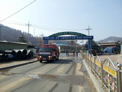 새봄을 맞이하여 2012.04.09(월) 내면의용소방대(대장 조종백), 내면여성대(대장 윤정열)와 함께 소방차 지원하여 내면 창촌리 시내도로청소를 실시하였습니다.