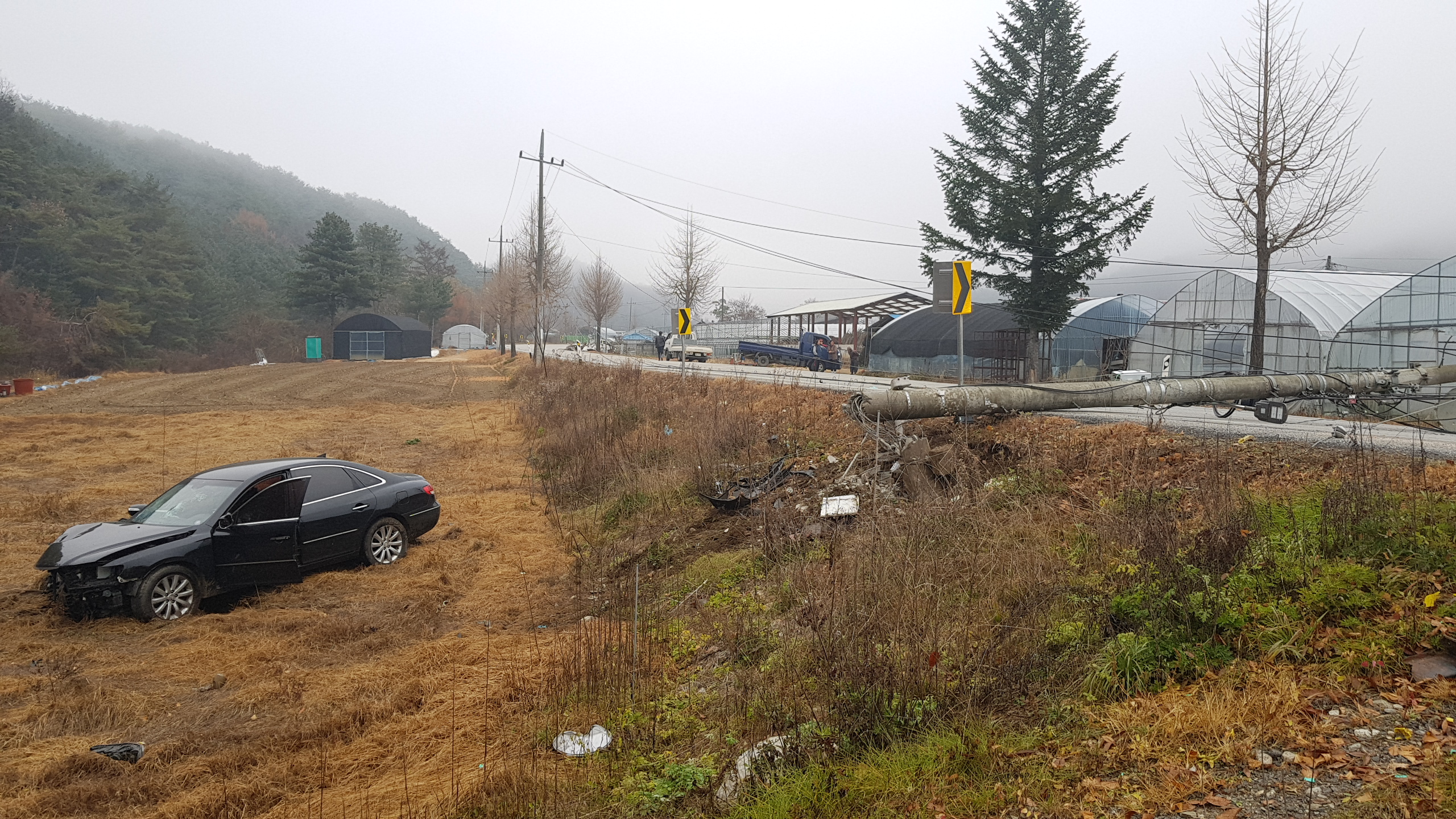 3. 내용 : 그렌져 승용차 전봇대 충격 후 밭으로 추락한 사고