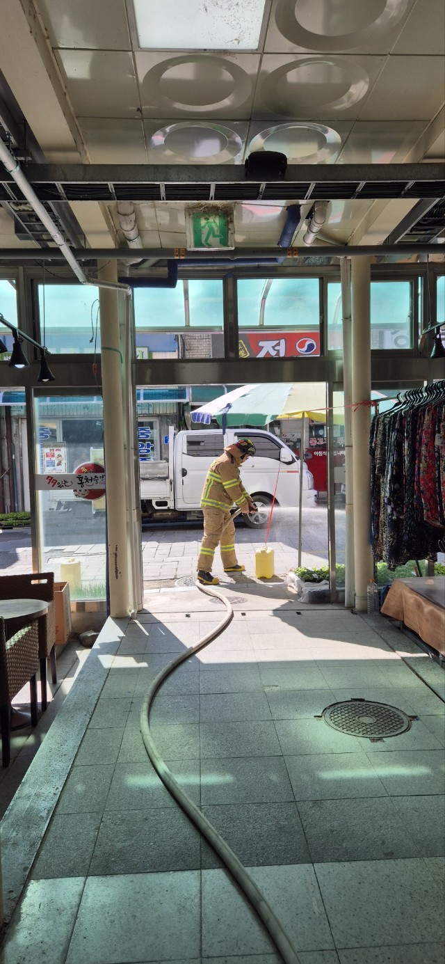 주요 내용은 ▲소방차량 배치 및 운영·통제 훈련 ▲화재진압훈련 ▲시장 내 소방시설 작동 여부 점검 ▲관계자 화재예방 안전교육 등이다.