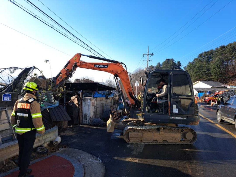홍천소방서(서장 김숙자)는 5일 오전 1시 56분에 홍천읍 결운리 한 주택에서 발생한 화재에 대해 소방인력 50여명과 소방차량 14대를 동원하여 1간만에 초기진압에 성공했으나, 굴삭기 섭외가 지연되어 8시간째 현장활동중이라고 밝혔다.