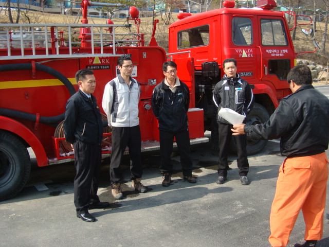 센터장 이강춘은 비발디파크내 자체 소방대원들에게 차량조작법, 산불진화요령, 안전사고방지대책 등을 교육하고 봄철 건조기 발생할수 있는 산불 예방에 만전을 기해줄것을 당부하였습니다.