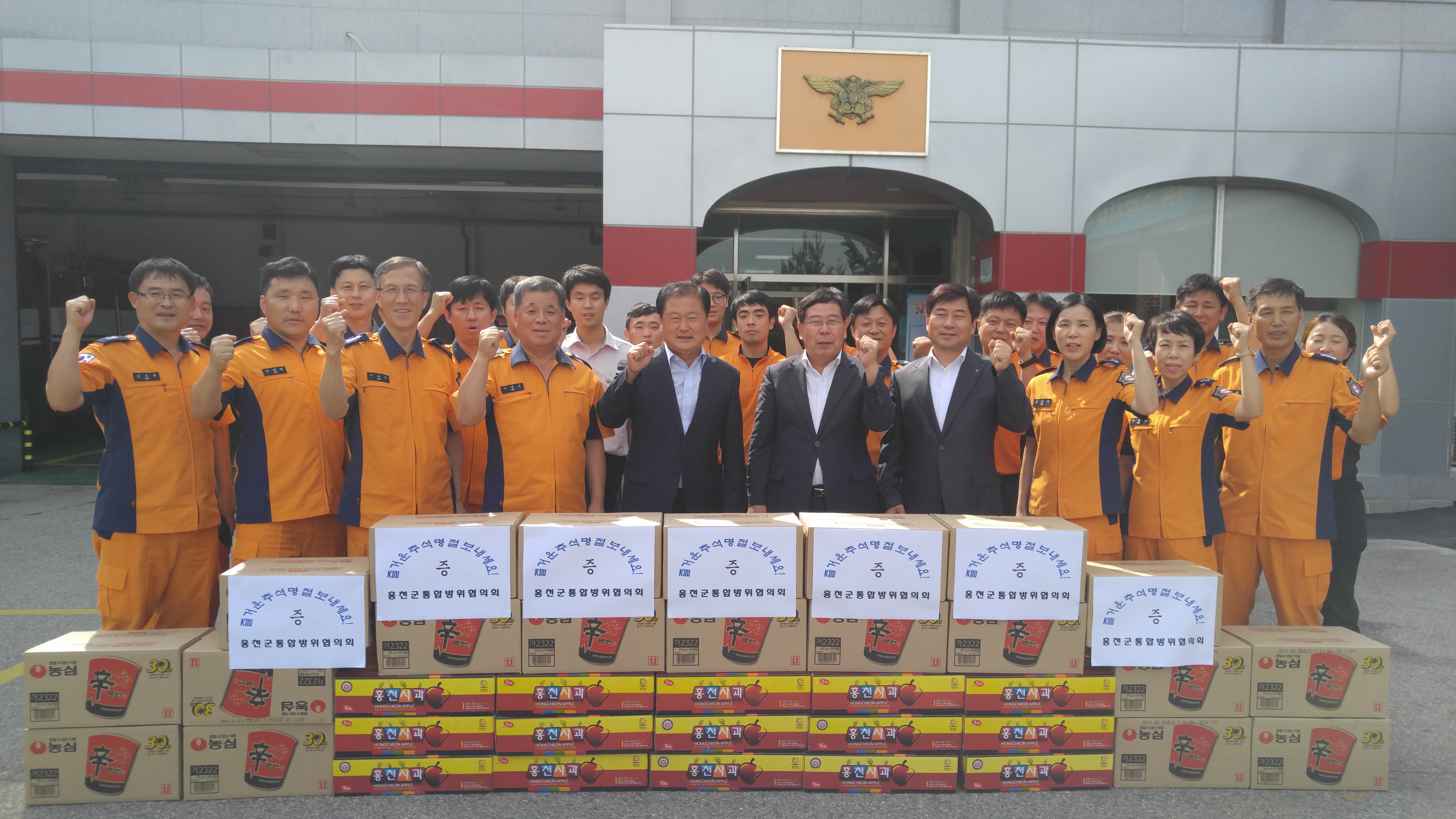 추석명절을 맞이하여 홍천군통합방위협의회(노승락 홍천군수, 신동천 홍천군의장, 허병희 농협은행 홍천군지부장)이 홍천소방서를 방문하여, 위문품을 전달하였다.