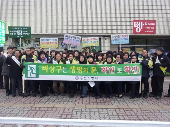 홍천소방서는 지난 21일 홍천터미널 일대에서 자율적인 안전관리의 적극수행과 안전문화 확산 및 피난통보 환경개선을 위한 ‘생명의 문 비상구 안전점검의 날’ 캠페인을 홍천소방서, 홍천군청, 홍천의용소방대등 약 70명이 참가한 가운데 실시했다.