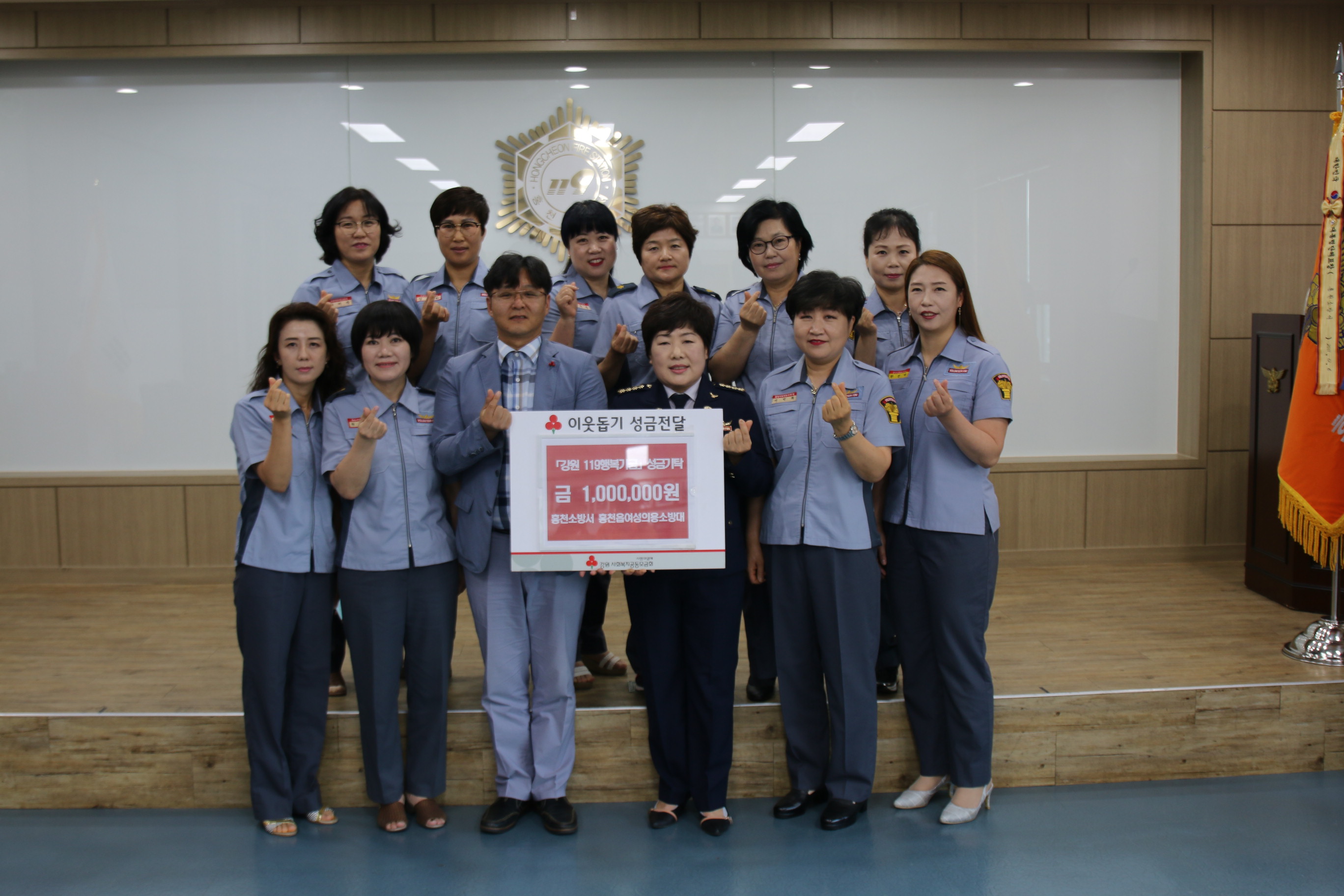 대회의실에서 강원사회복지공동모금회를 통해「강원 119행복기금」으로 성금 100만원을 기부했다.